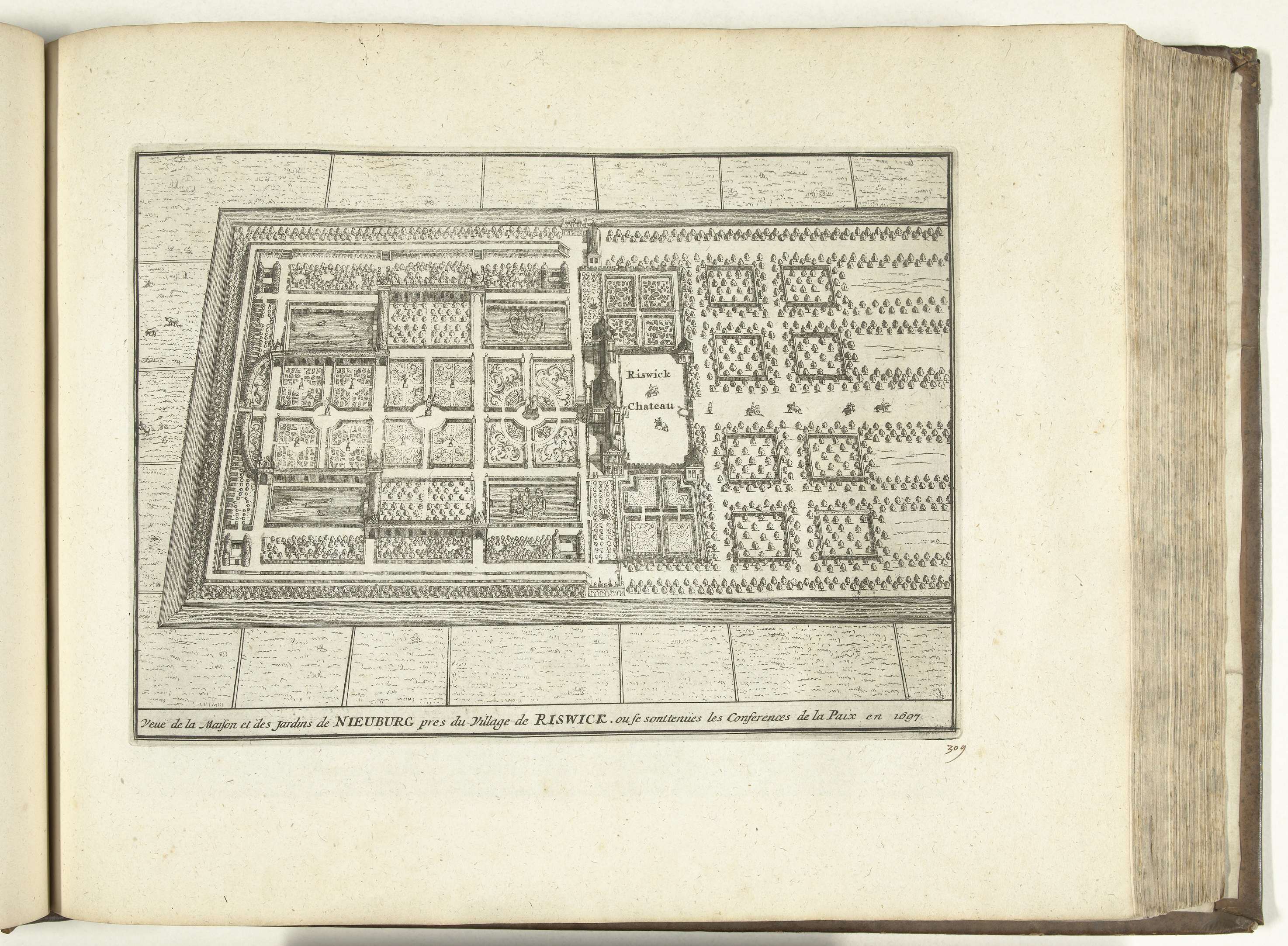 Plattegrond van het Huis ter Nieuburch met tuinen bi...