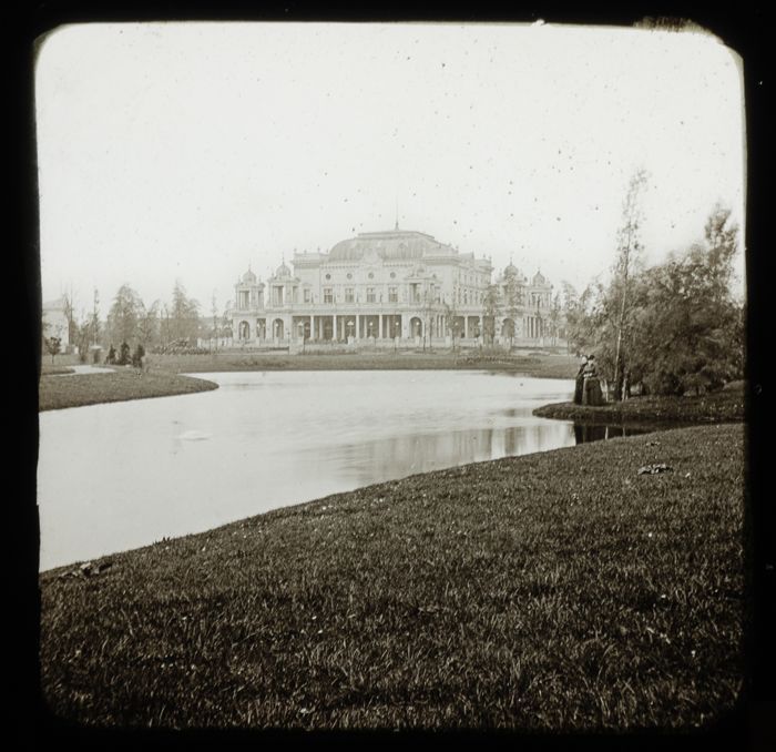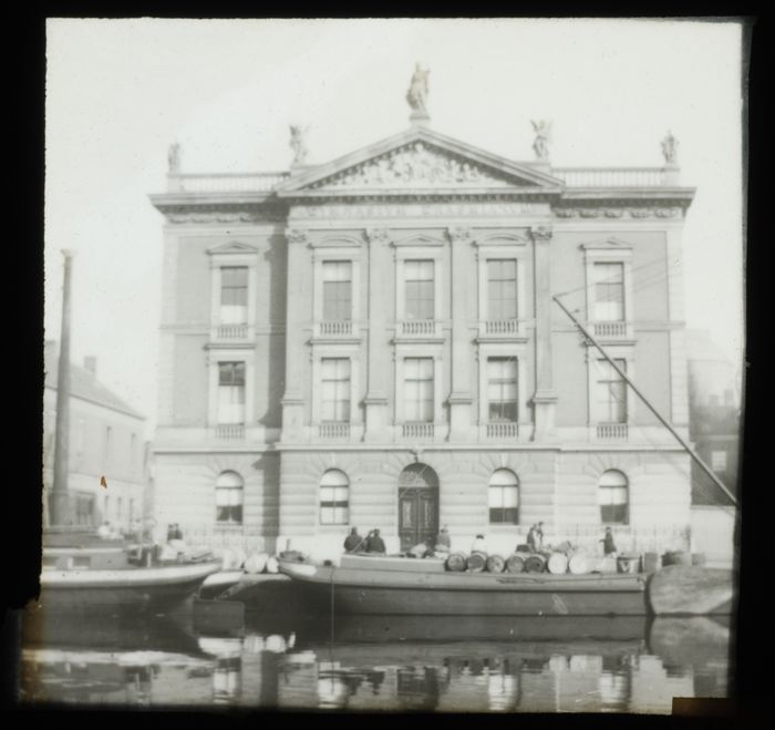 Handgekleurde glasdia van het Poortgebouw aan de Kon...