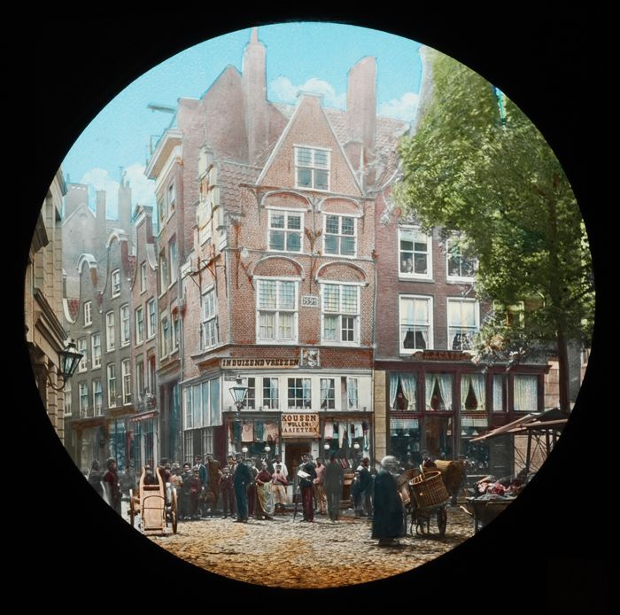 Handgekleurde glasdia Postkantoor aan de Blaak