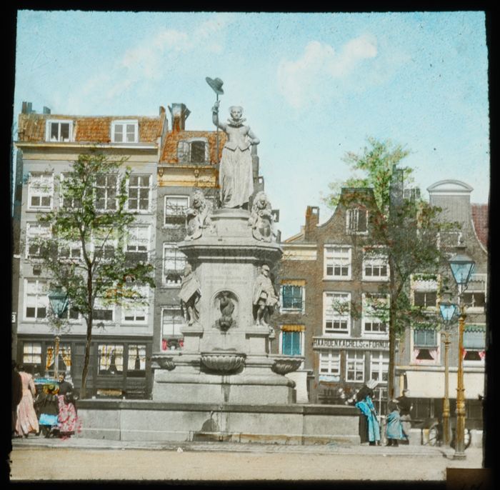Glasdia van het standbeeld van Erasmus aan de Grotem...