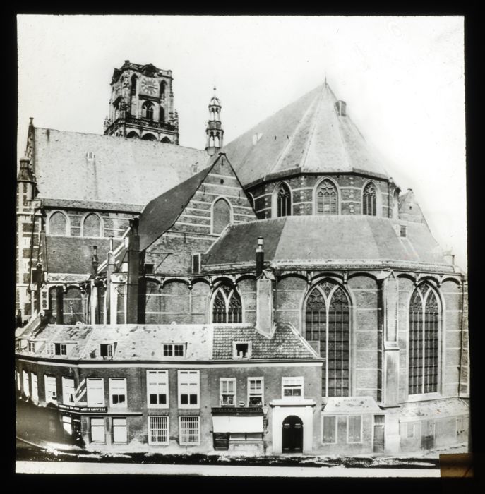 Glasdia Laurenskerk achterzijde, met aangebouwde hui...