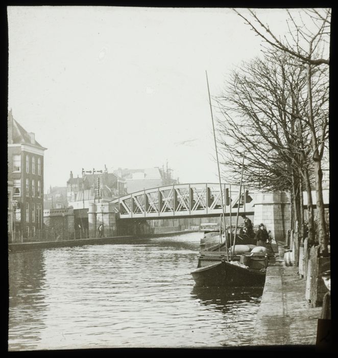 Handgekleurde glasdia van Kolkkade met spoorviaduct ...