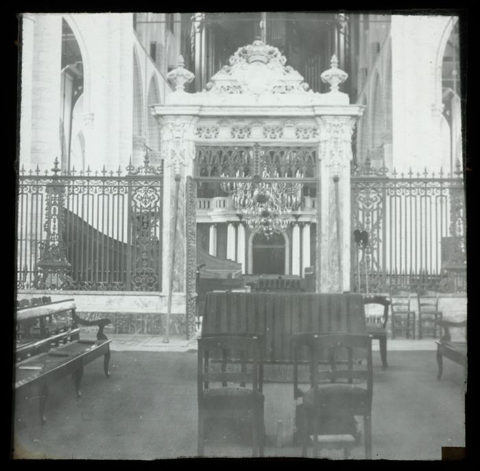 Glasdia Laurenskerk interieur met koorhek