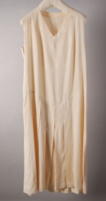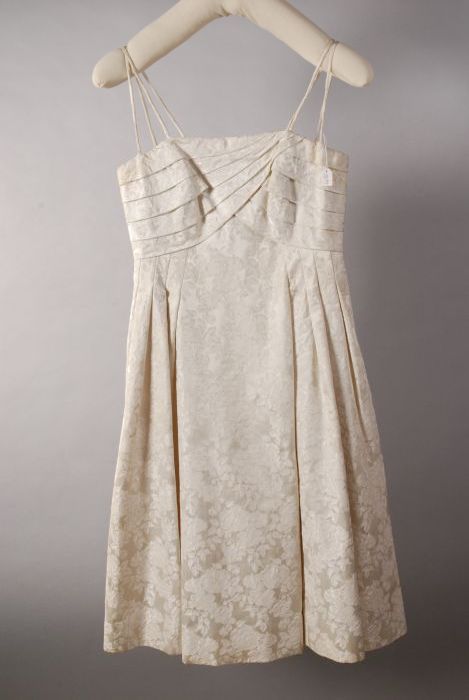 Roomwitte zijden jurk met plooien in de rok en een g...