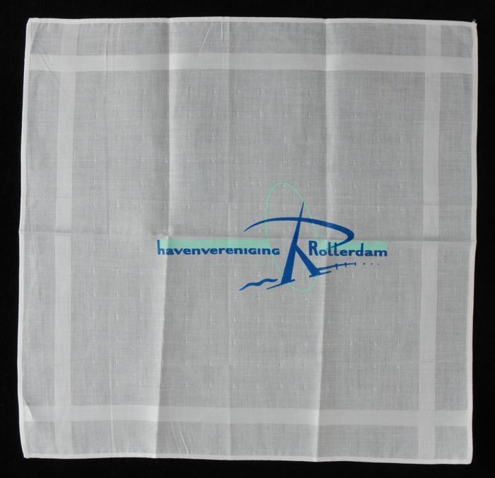 Wit katoenen zakdoek met in groen en blauw opdruk va...