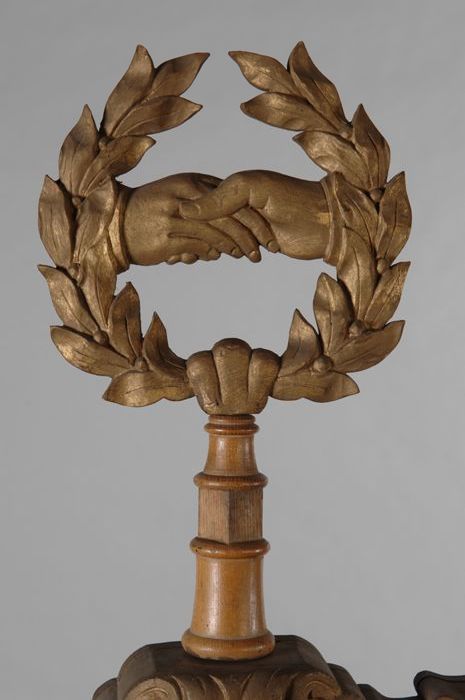 Vaandelkroon van goudgeschilderd hout, lauwerkrans m...