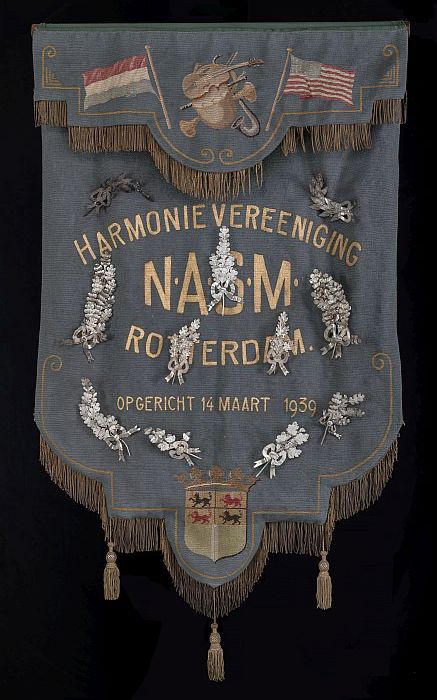 Blauw katoenen vaandel of banier van de Rotterdamse ...