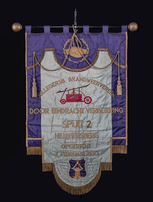 Beschilderd fluwelen vaandel, brandweer, "Het Nieuwe...