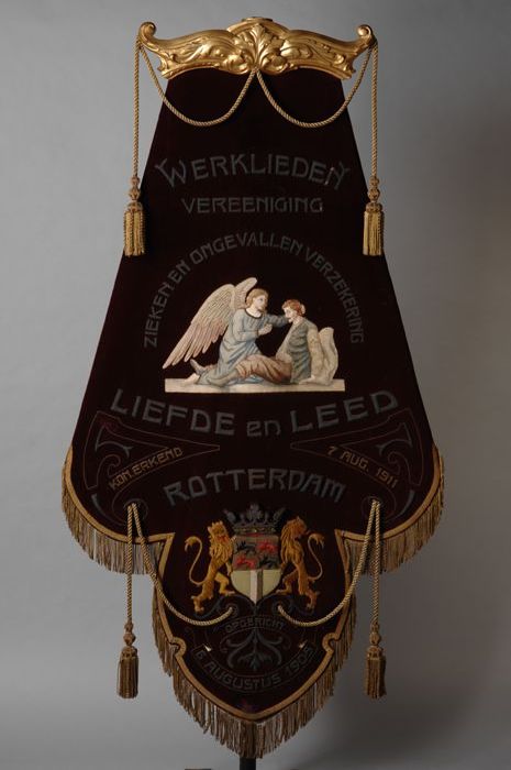 Donkerrood fluwelen vaandel "Rotterdamsch Gemengd Za...