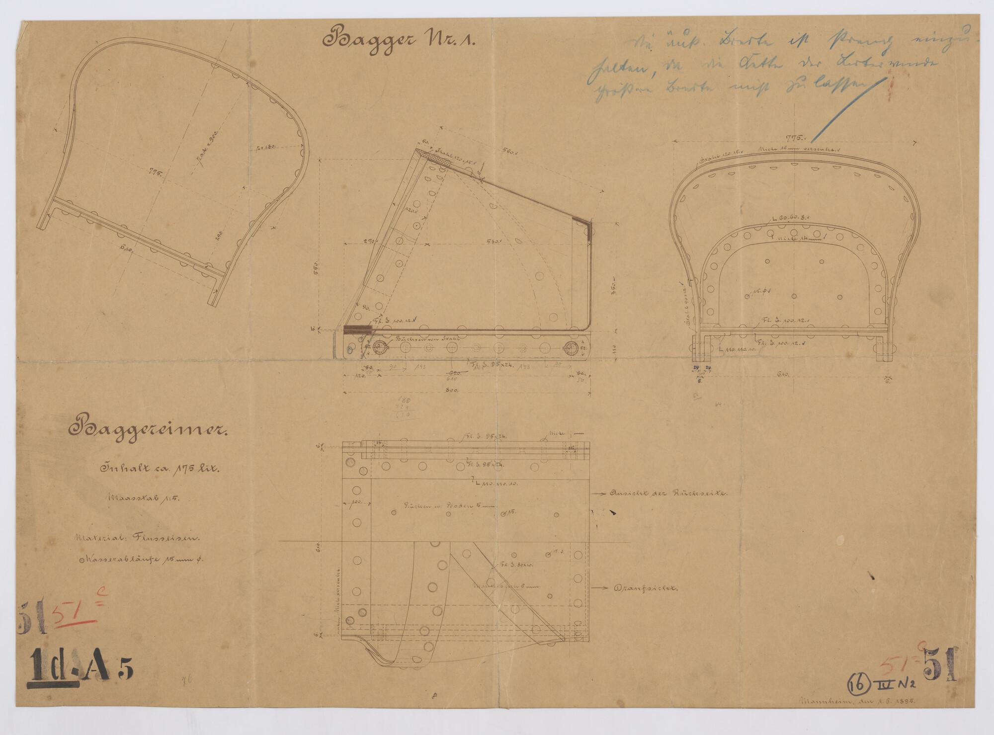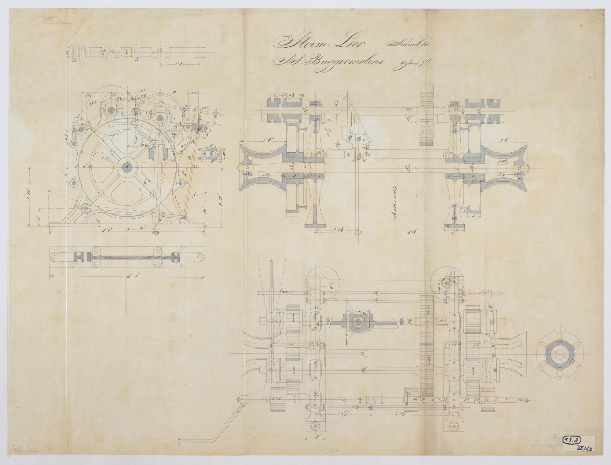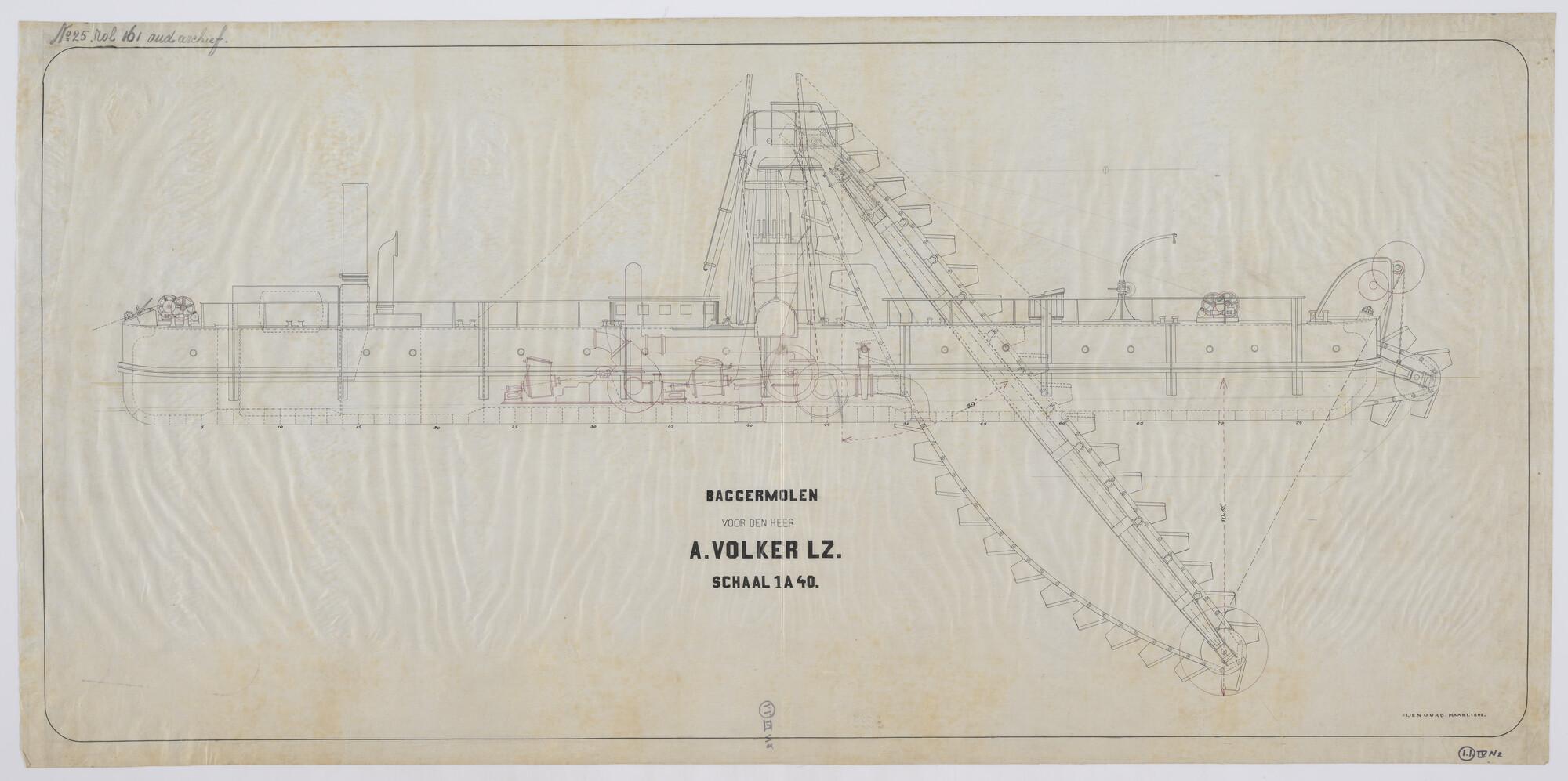 Zijaanzicht en bovenaanzicht van een baggermolen 1892
