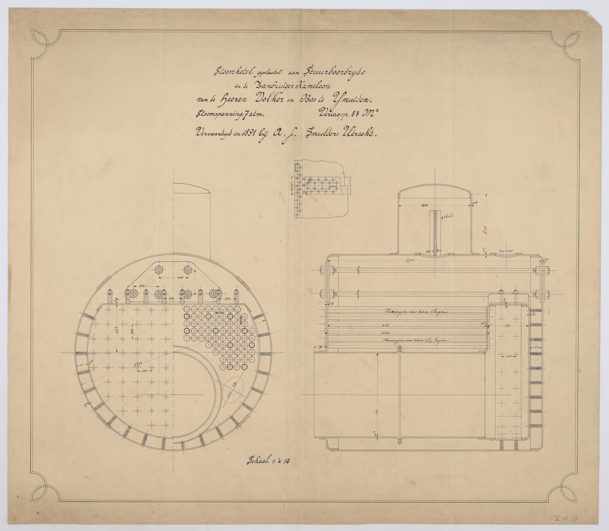 Stoomketel geplaatst aan stuurboordszijde in de zand...