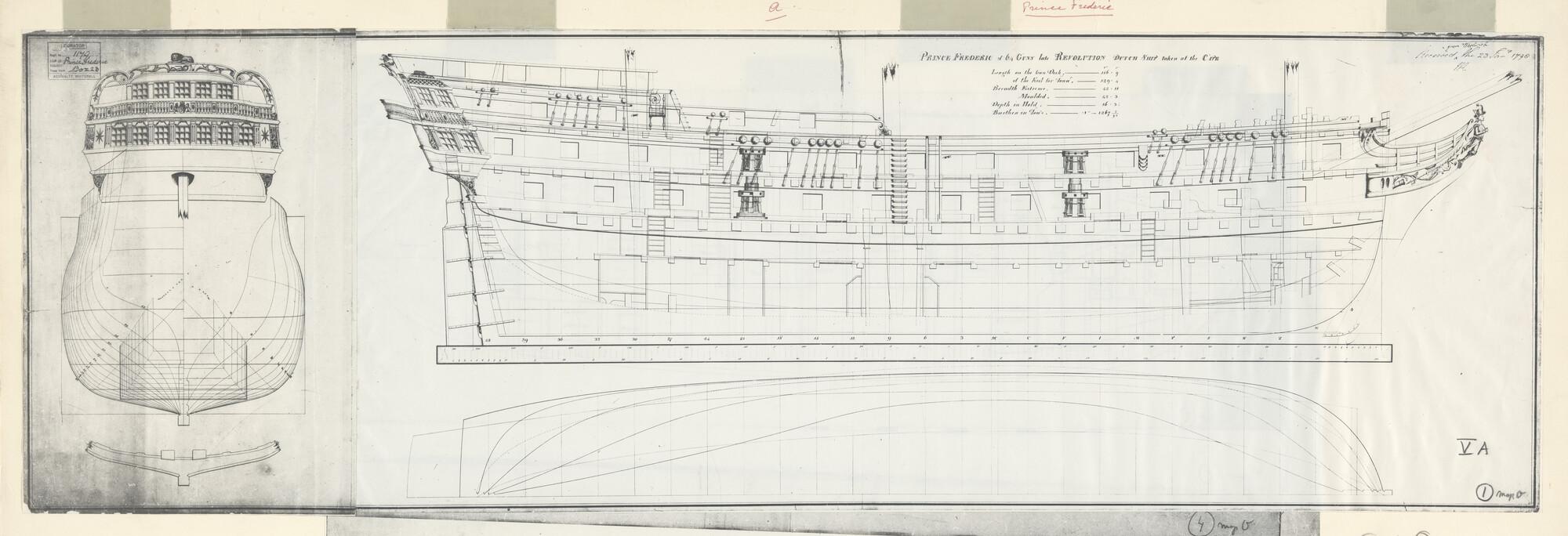 Oorlogsschip Prins Frederik 64 stukken: langsdoorsnede