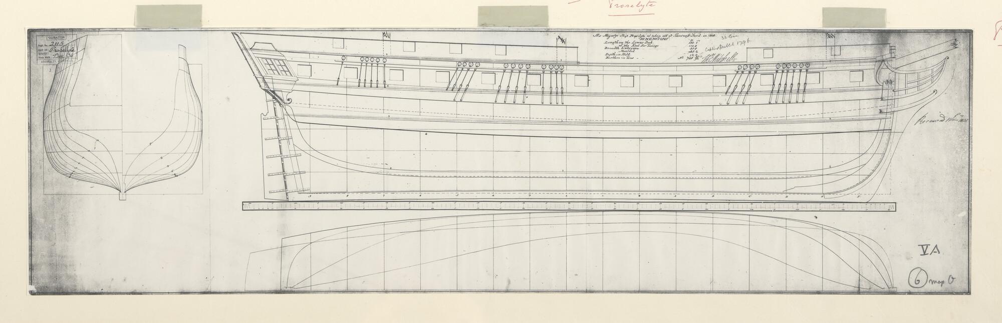 Zijaanzicht en spantenraam waterlijnen van het linie...