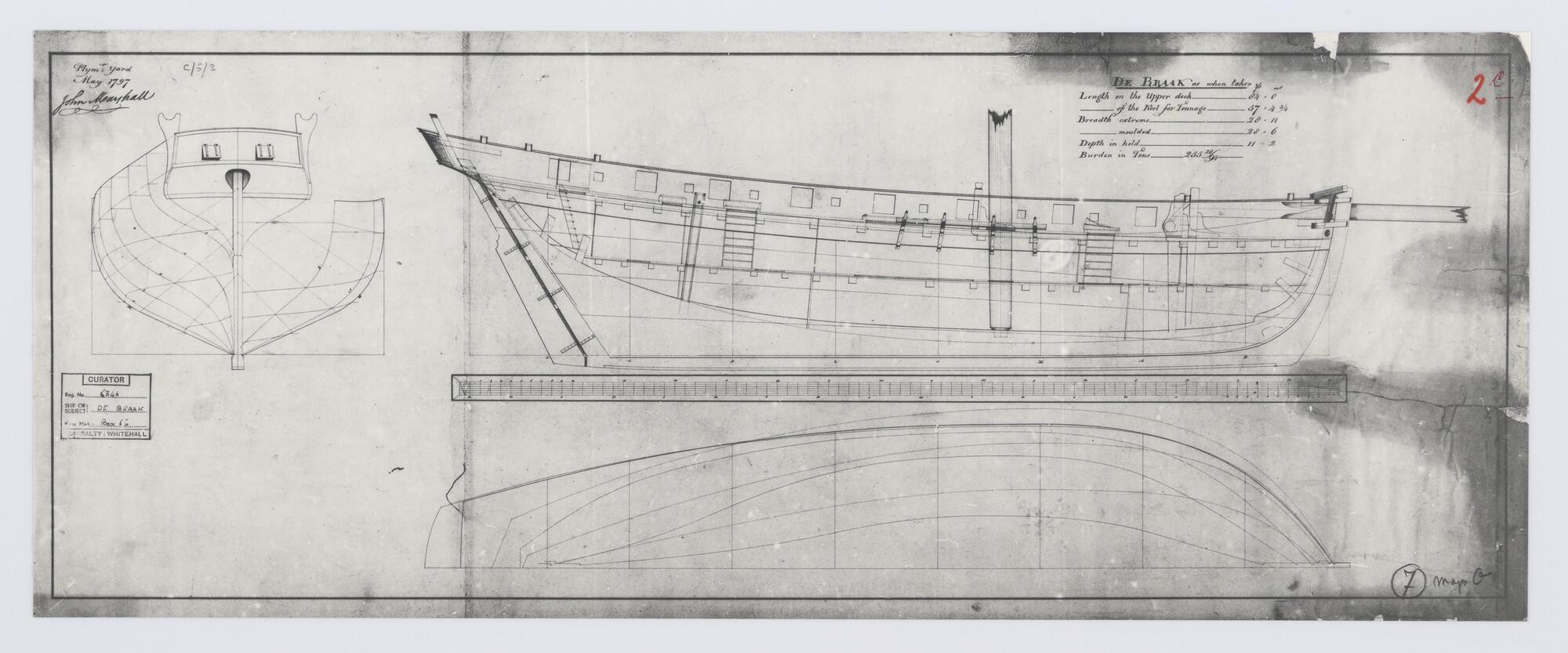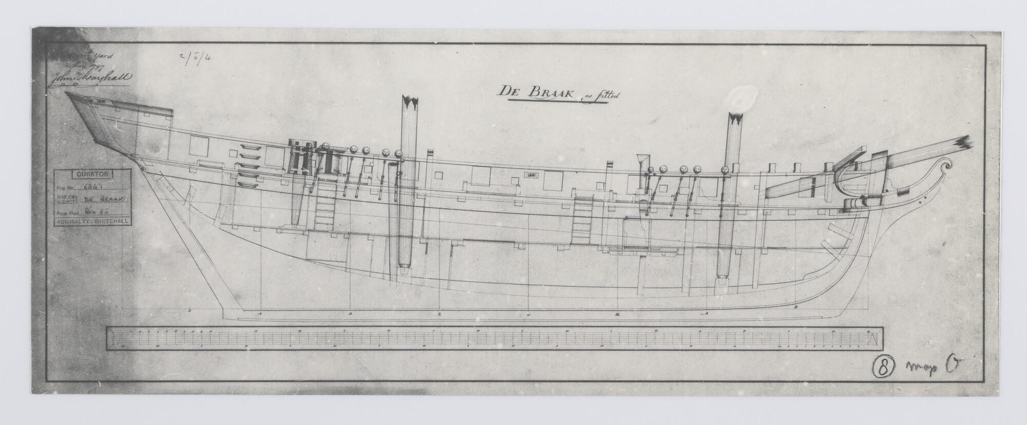 Oorlogsschip Braak: verticale langsdoorsnede