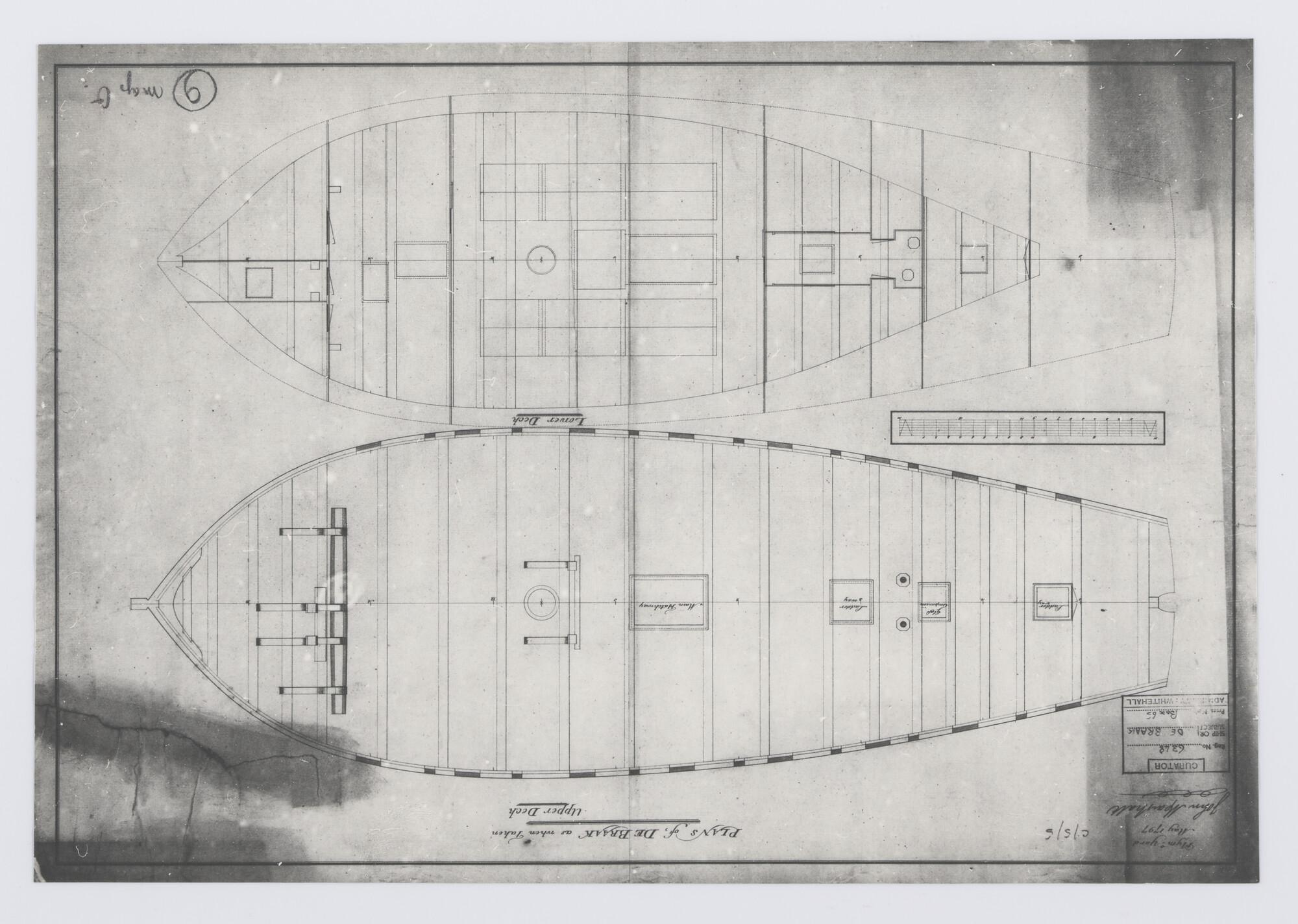 Oorlogsschip Braak, bovendek ("upperdeck") en benede...
