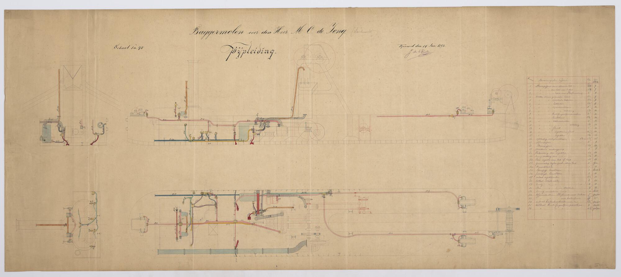 Pijpleiding schema van een baggermolen 1893