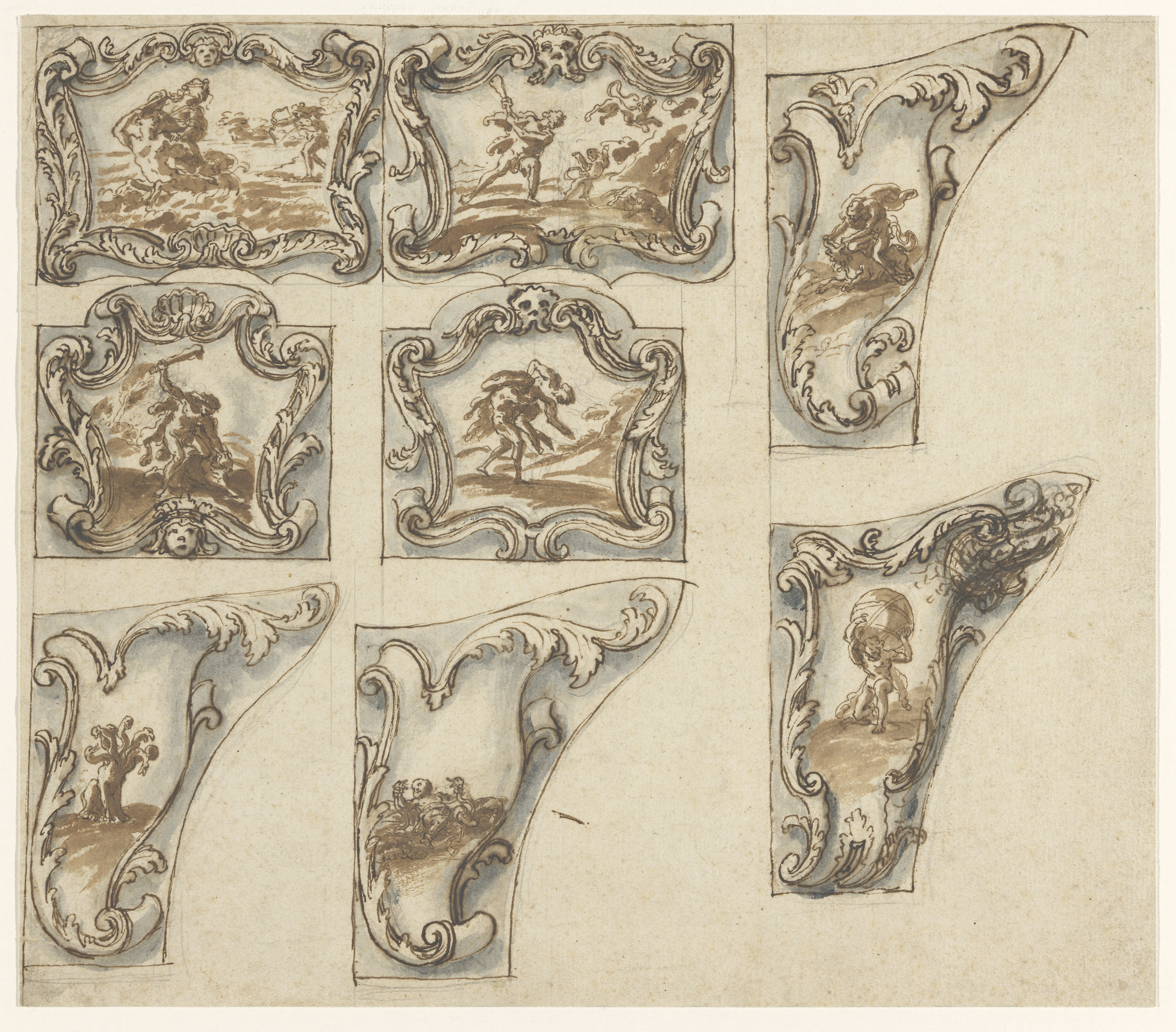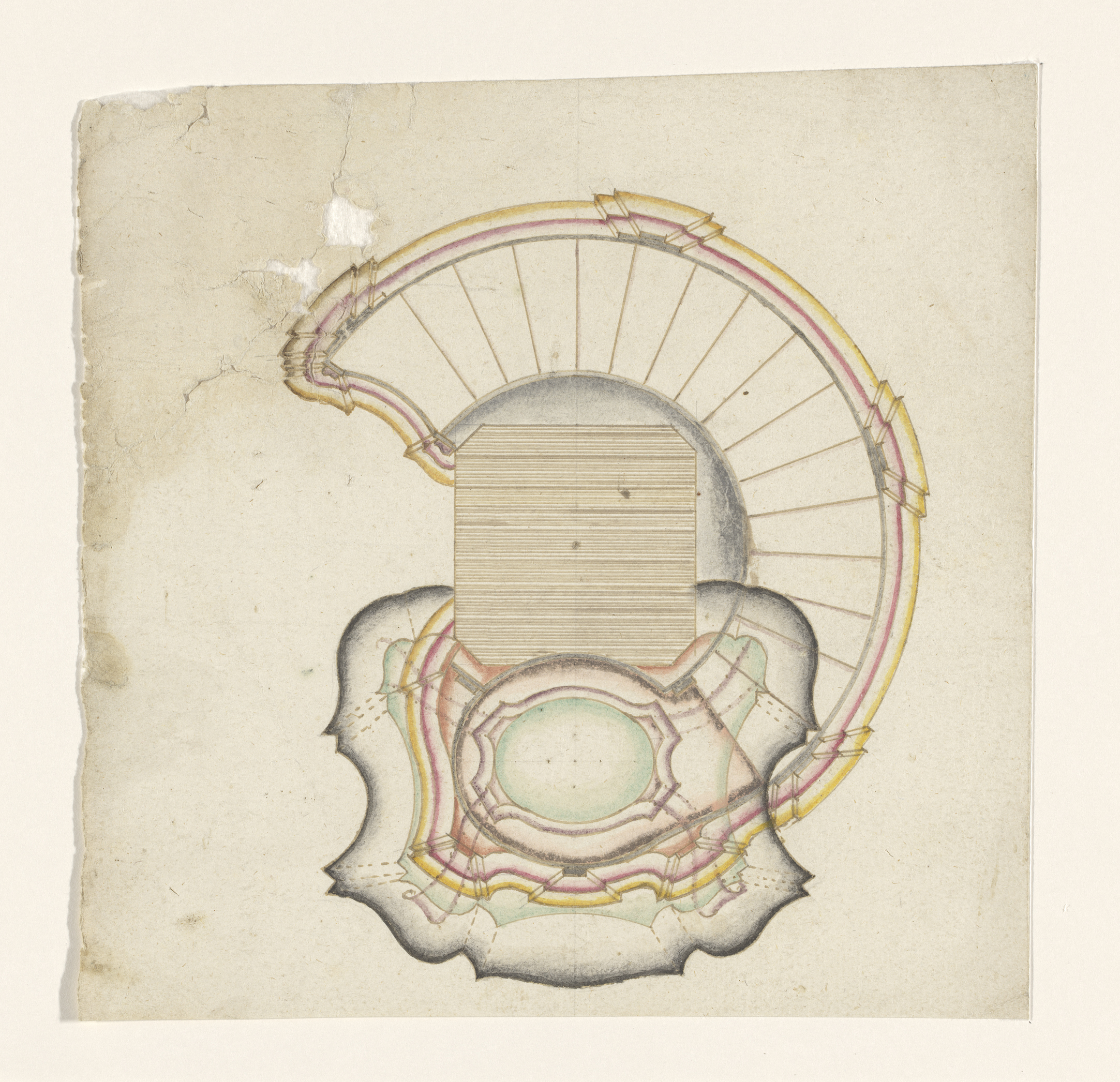 ontwerp voor de linkerhelft van een vaas, met een oo...