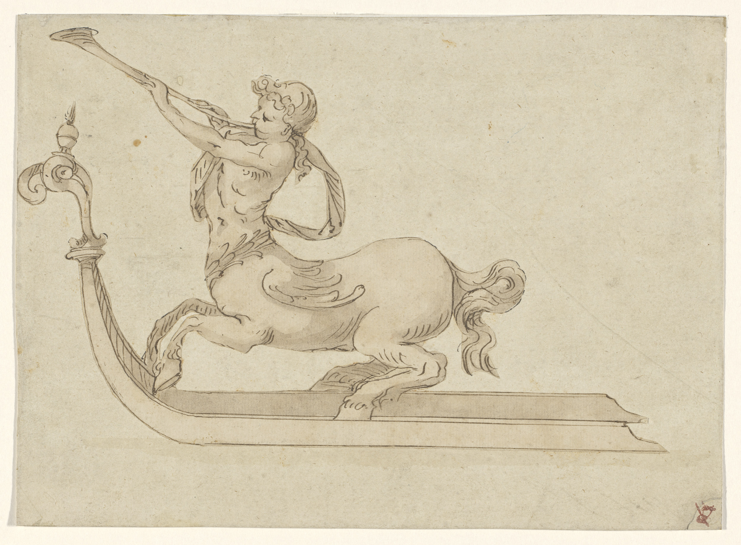 Ontwerp voor een slede in de vorm van een hoornblaze...