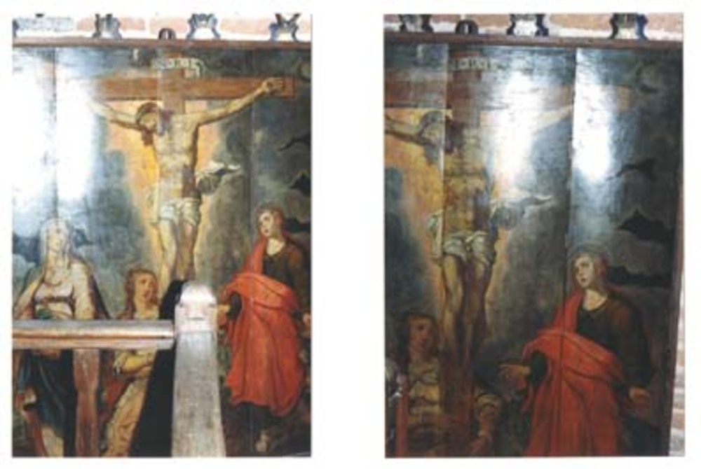 Paneelschildering "Kruisiging met Maria Magdalena en...