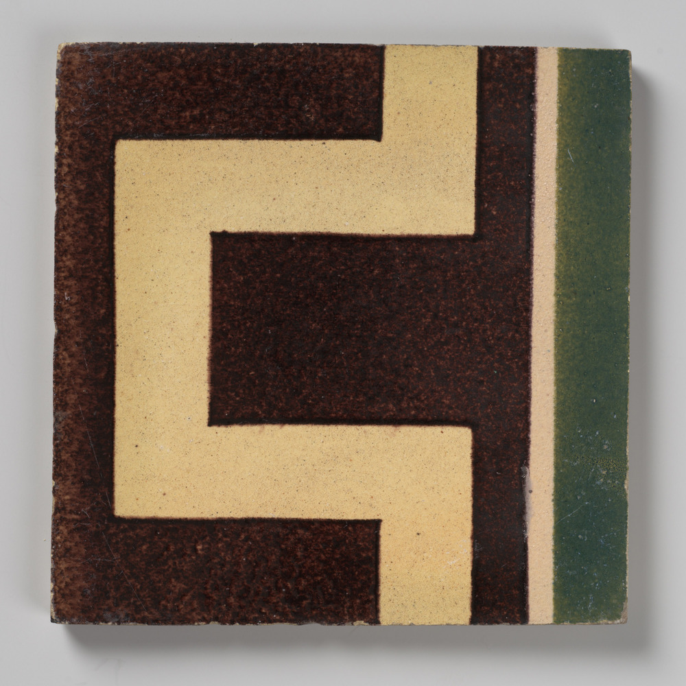 zeshoekige tegel van aardewerk, voorstellende orname...