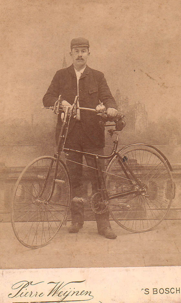 portret van G.Thooft met fiets; Thooft was o.a. rent...