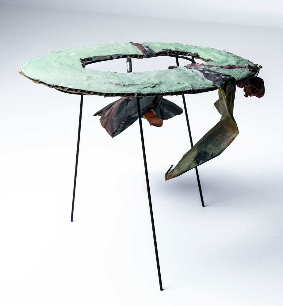 Voorstudie in karton en metaal met bloemen