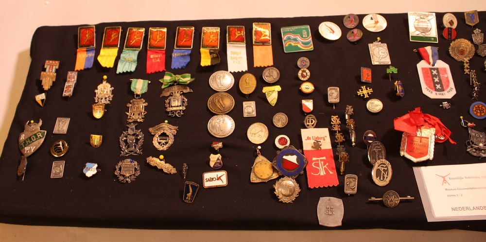 Vitrinekastje met ensemble van 9 NK medailles van Fa...