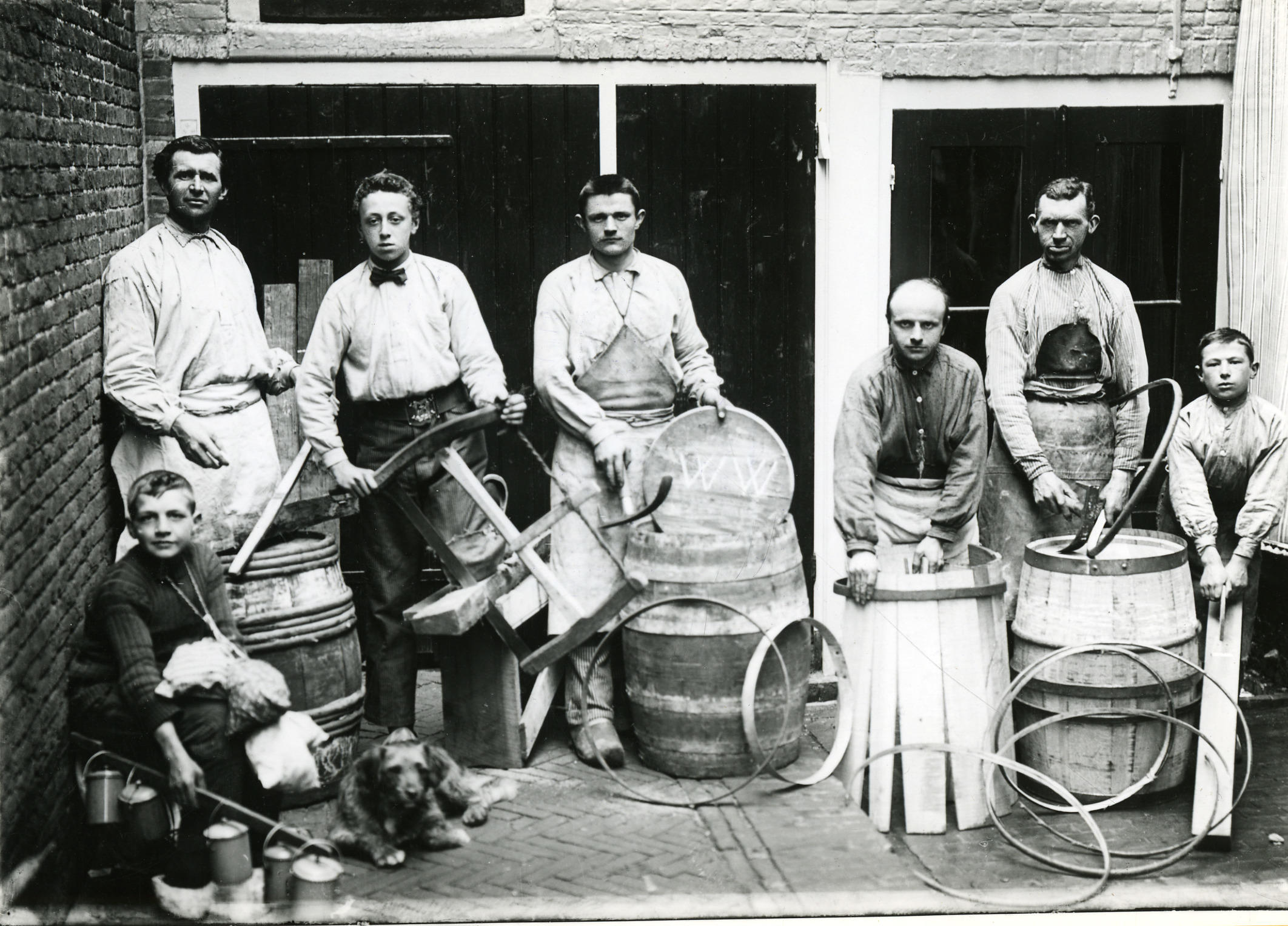 Personeel van een kuiperij, Vlaardingen (zwart-wit f...