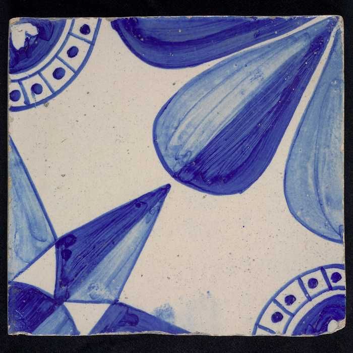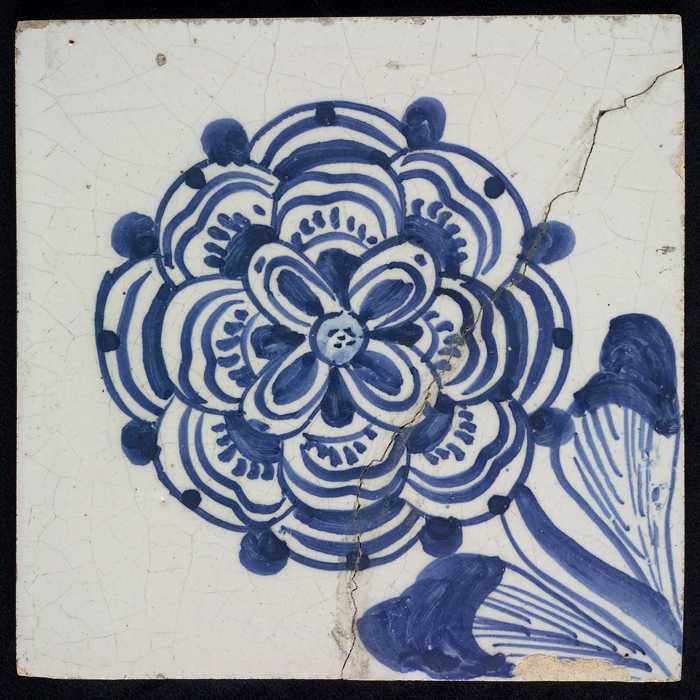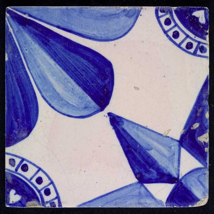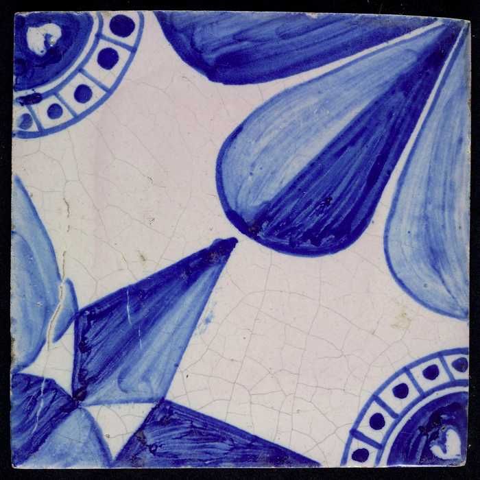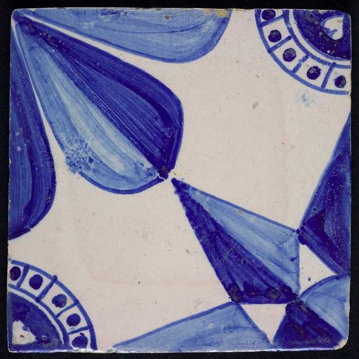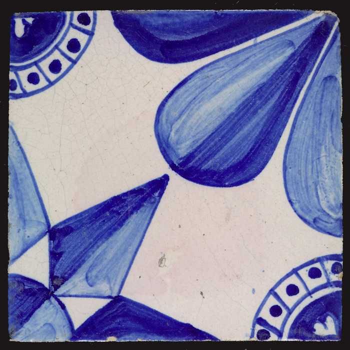Ornamenttegel, blauw op wit, diagonaal decor, openge...