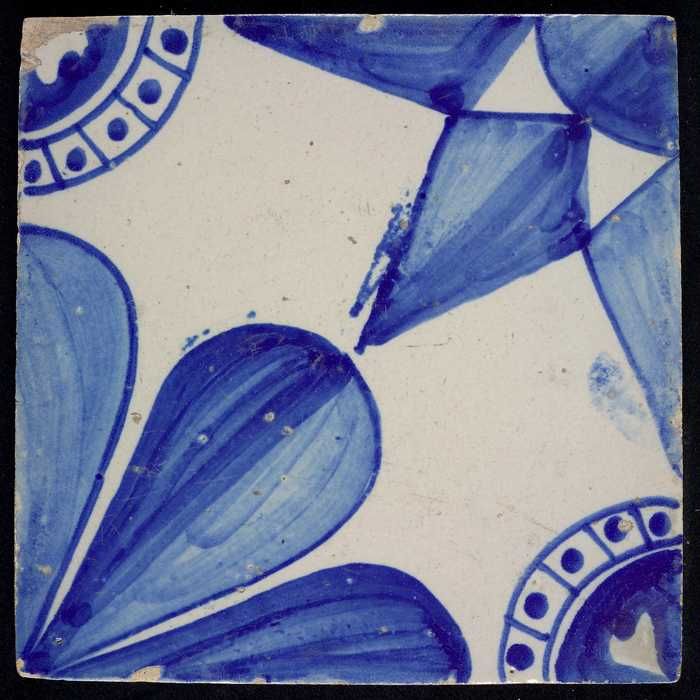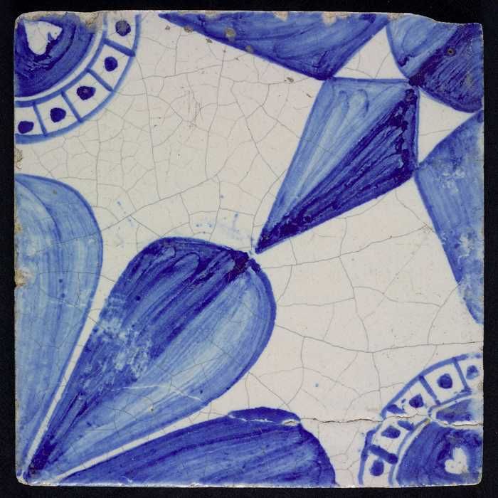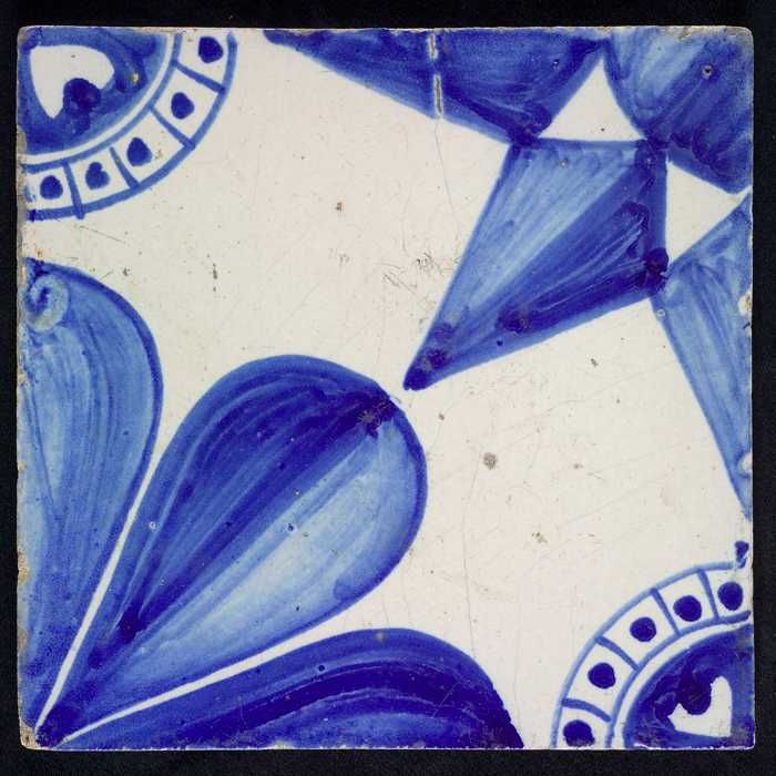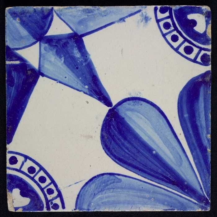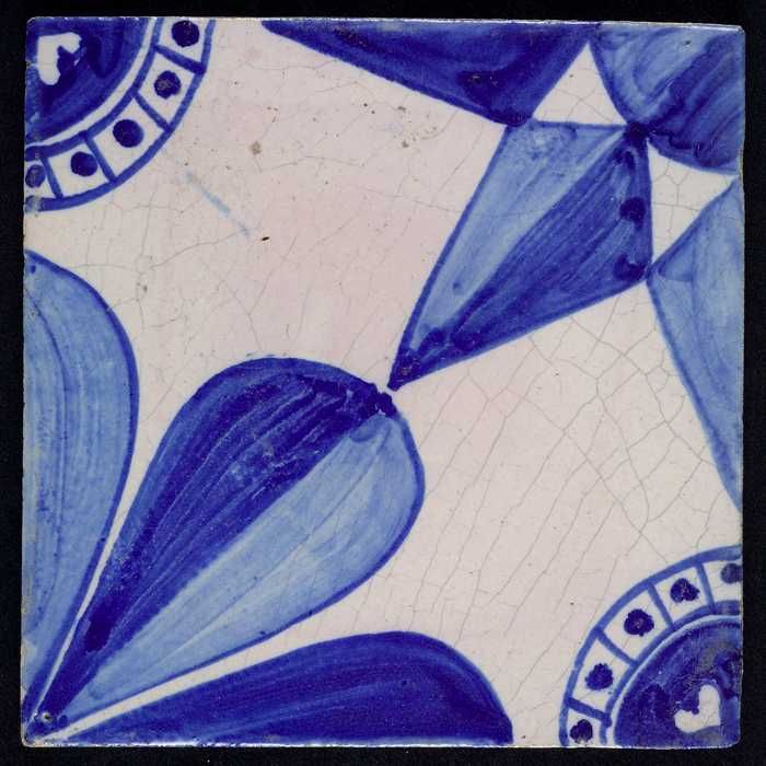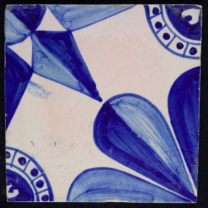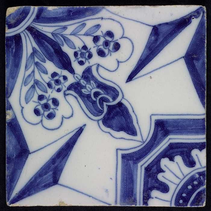 Ornamenttegel, blauw op wit, diagonaal decor, kwartc...