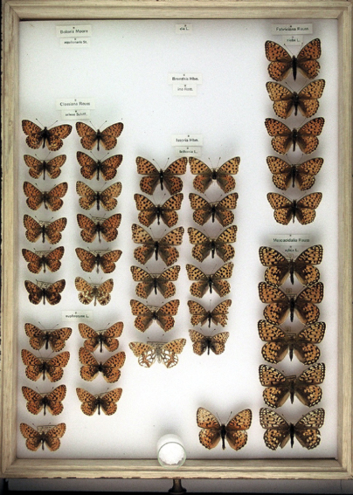 Vlinderlade 009 van 106 van hout en glas met daarin ...