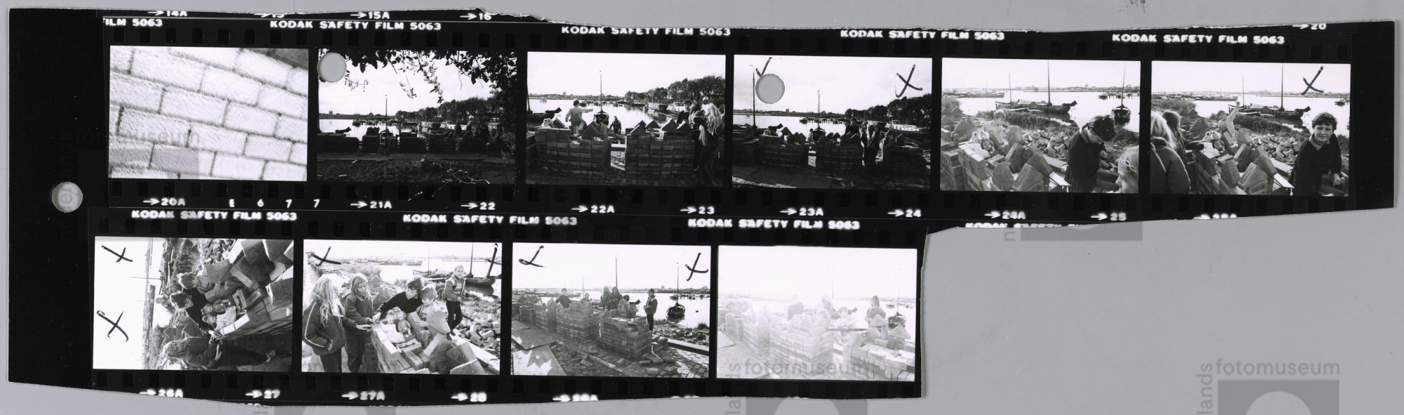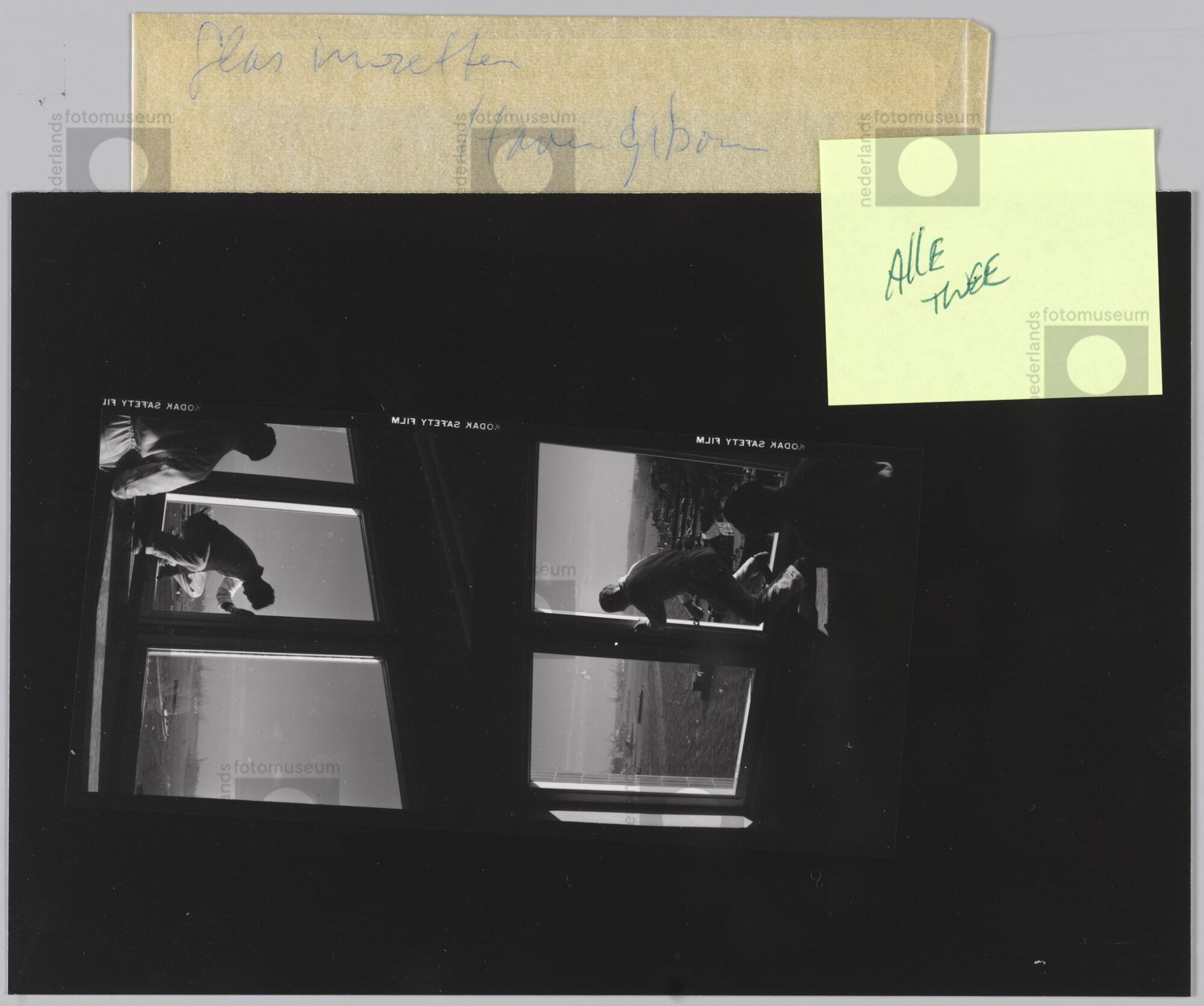 Amsterdam. Havengebouw in aanbouw, inzetten van raam