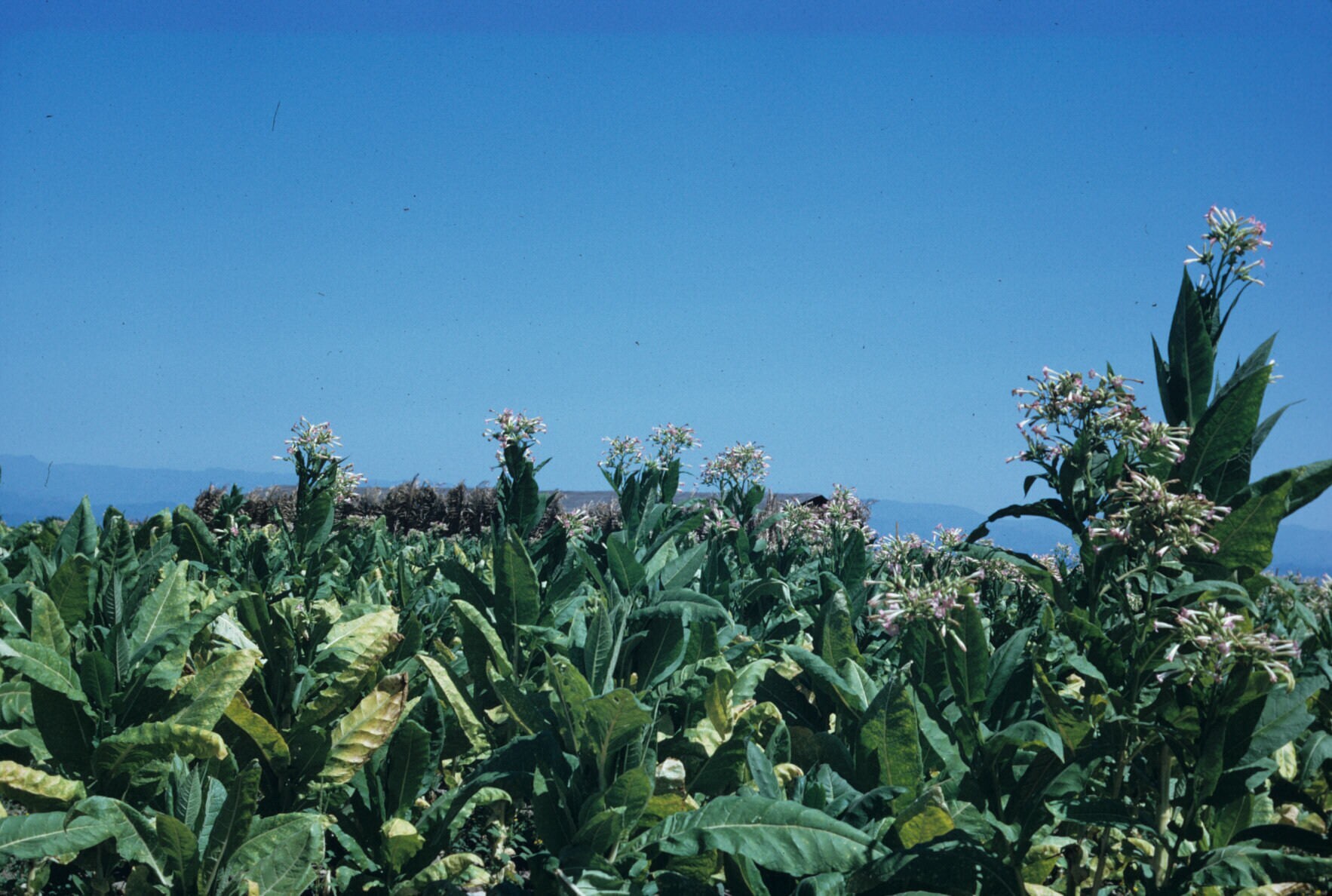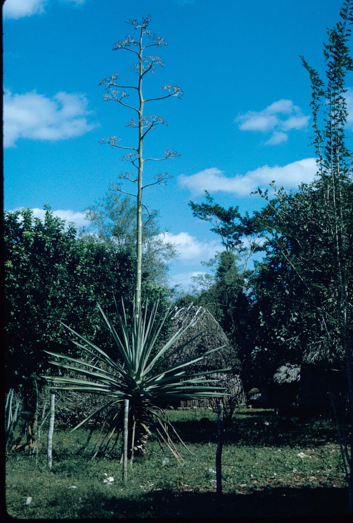 opuntiaplantage met agave op voorgrond; aan horizon:...