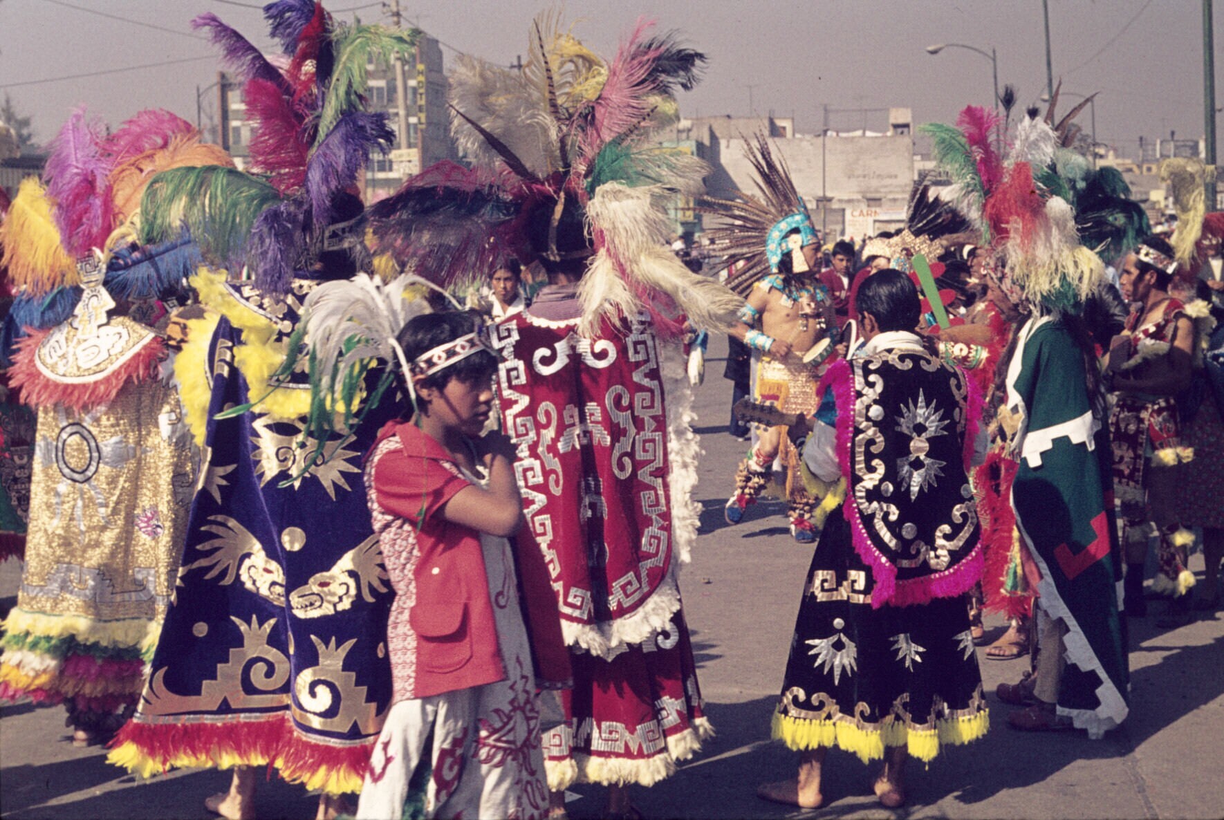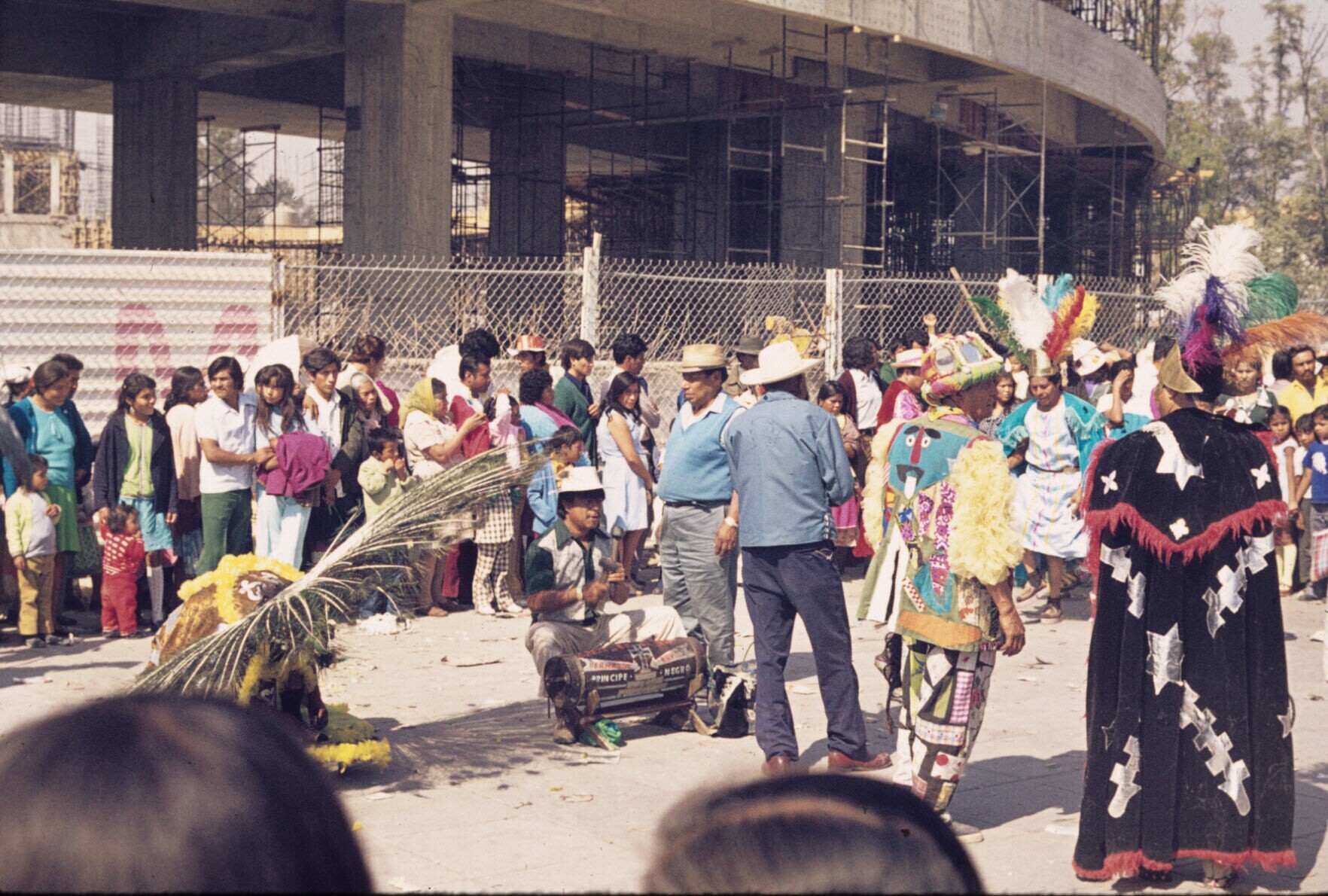 'concheros' (dansers) voor de oude basiliek van Guad...