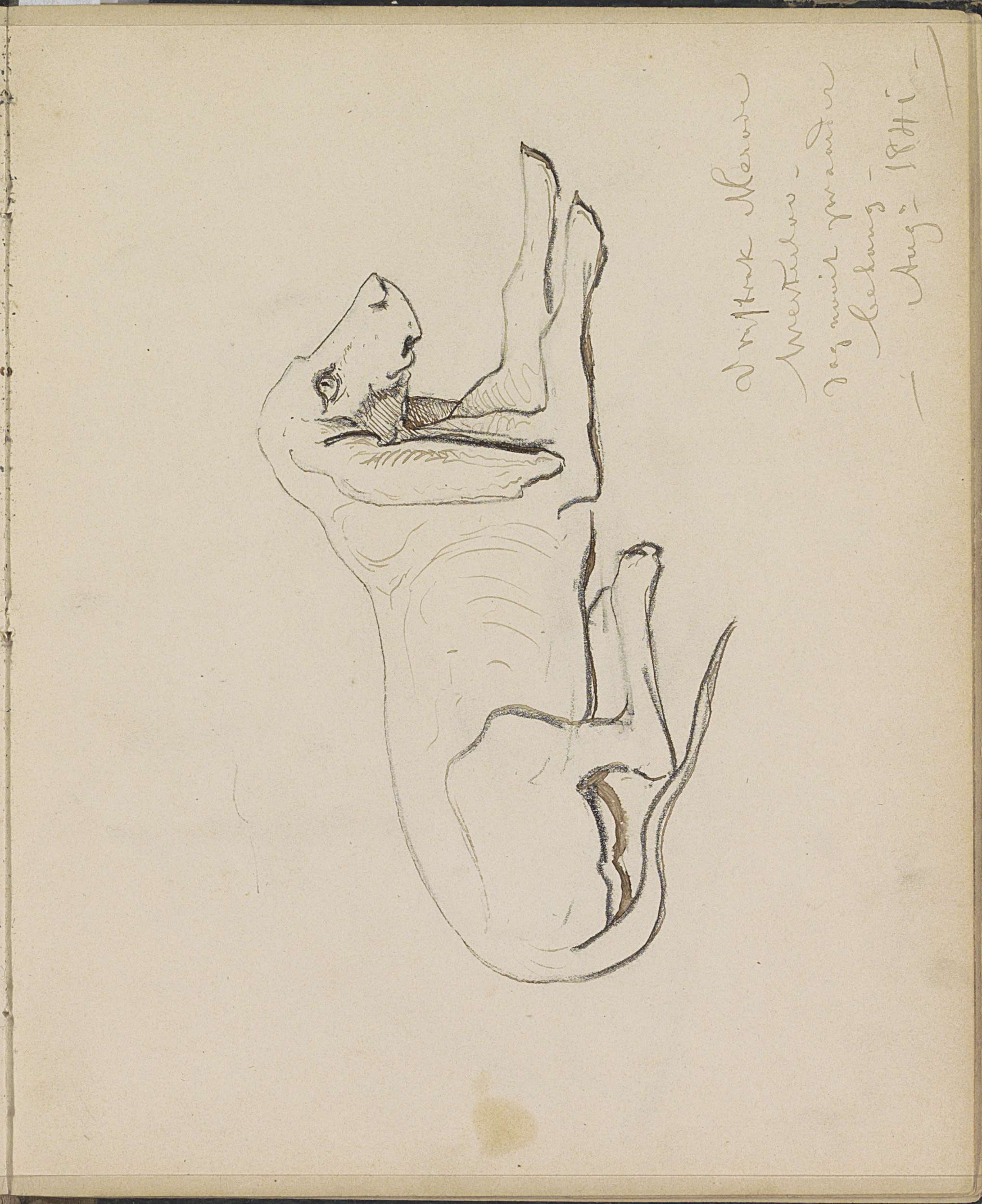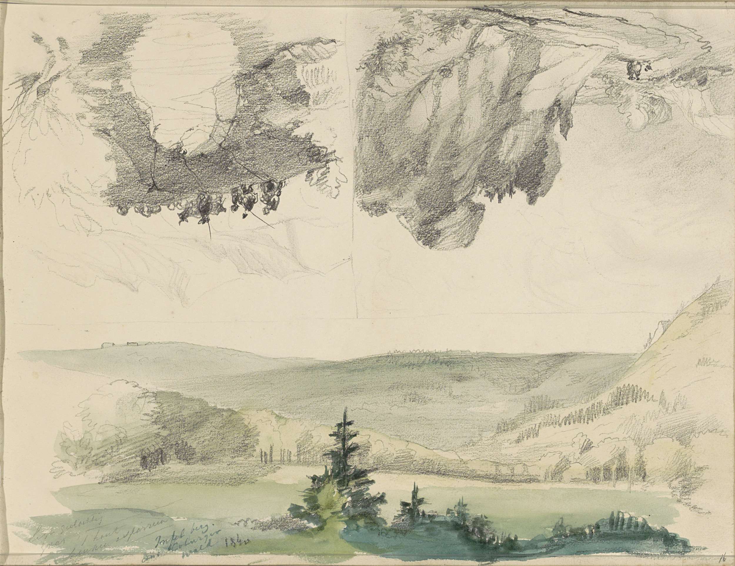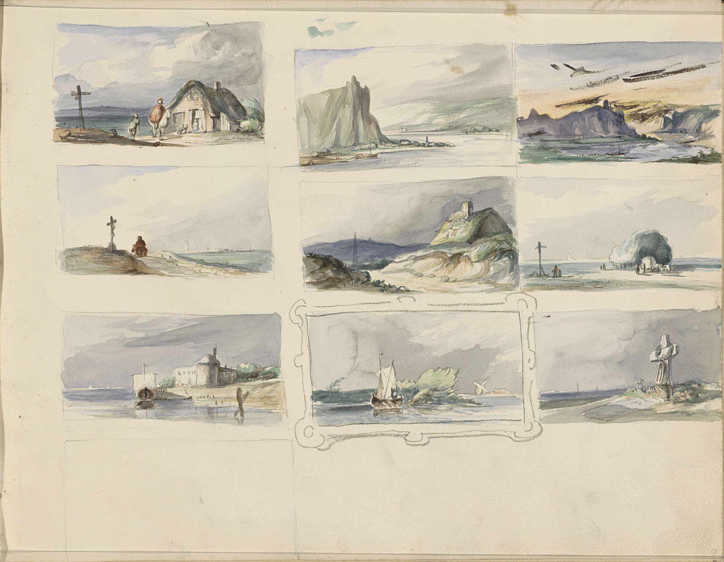 Studieblad, onder andere met een paard, ruiter en bo...