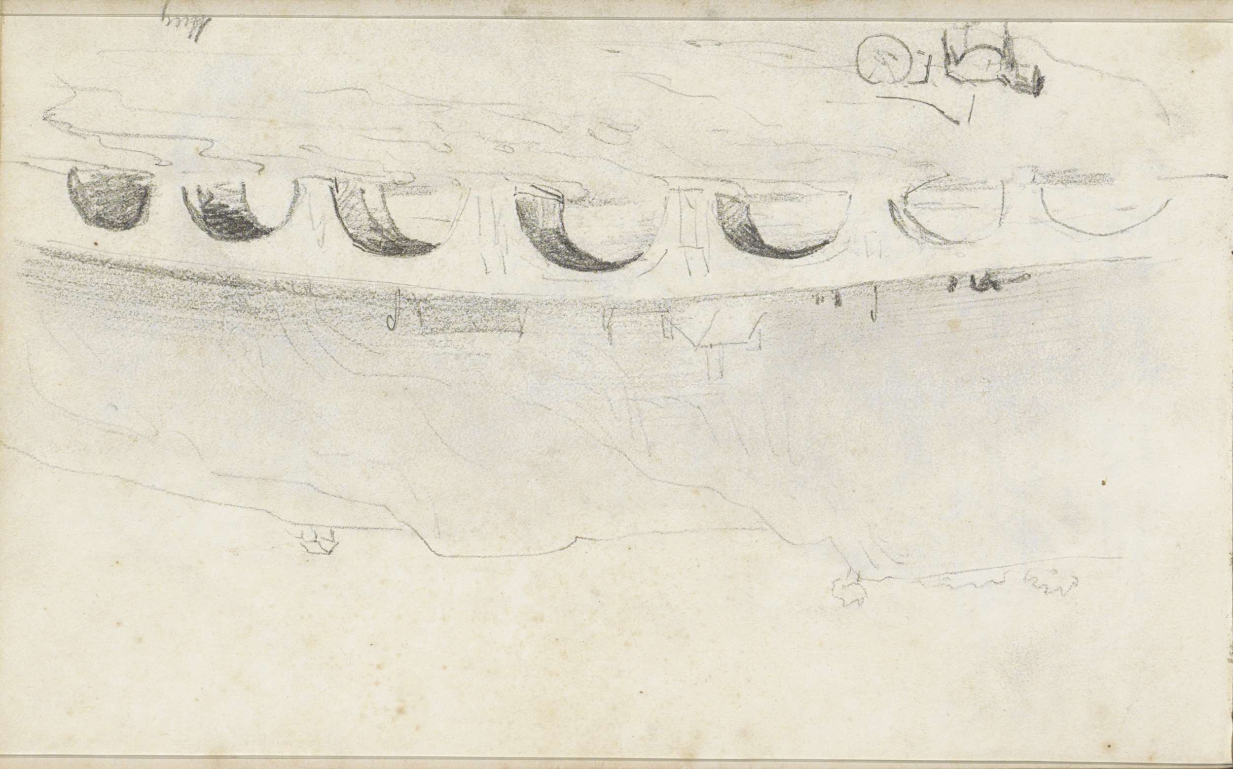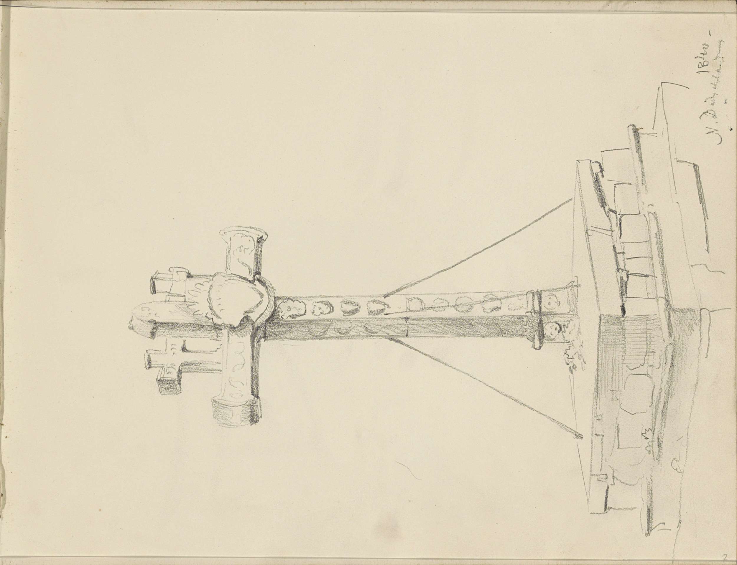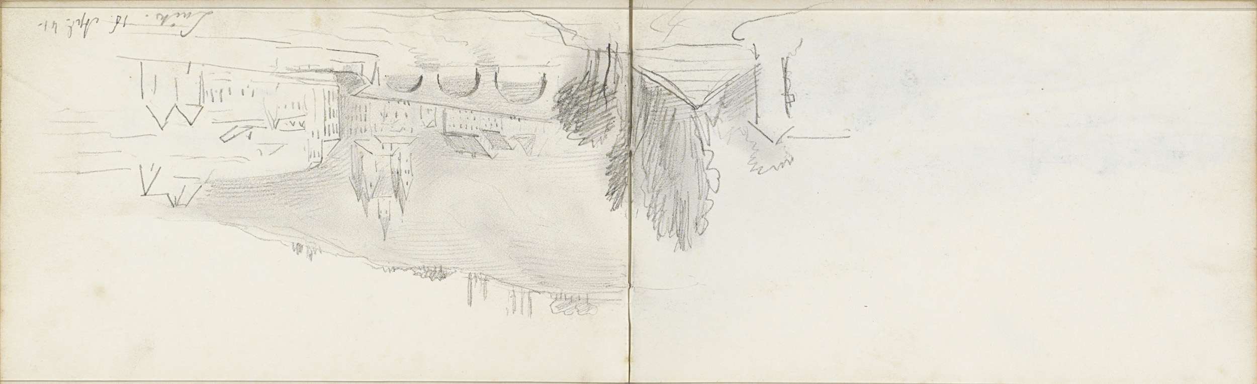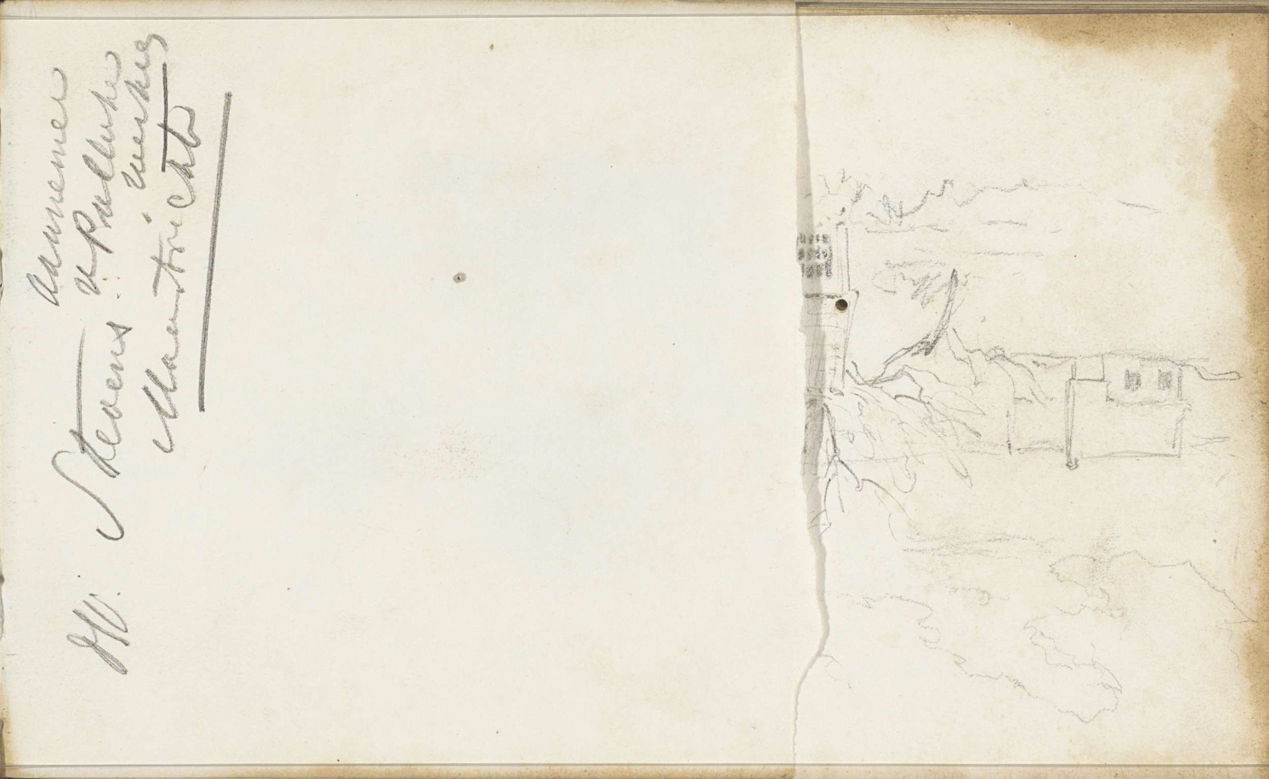 Studieblad, onder andere met een paard, ruiter en bo...