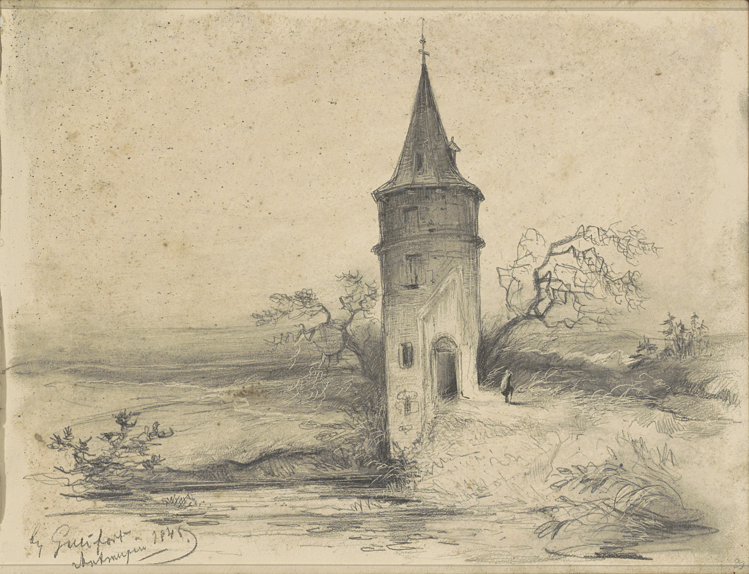 Landschap met een toren bij Antwerpen