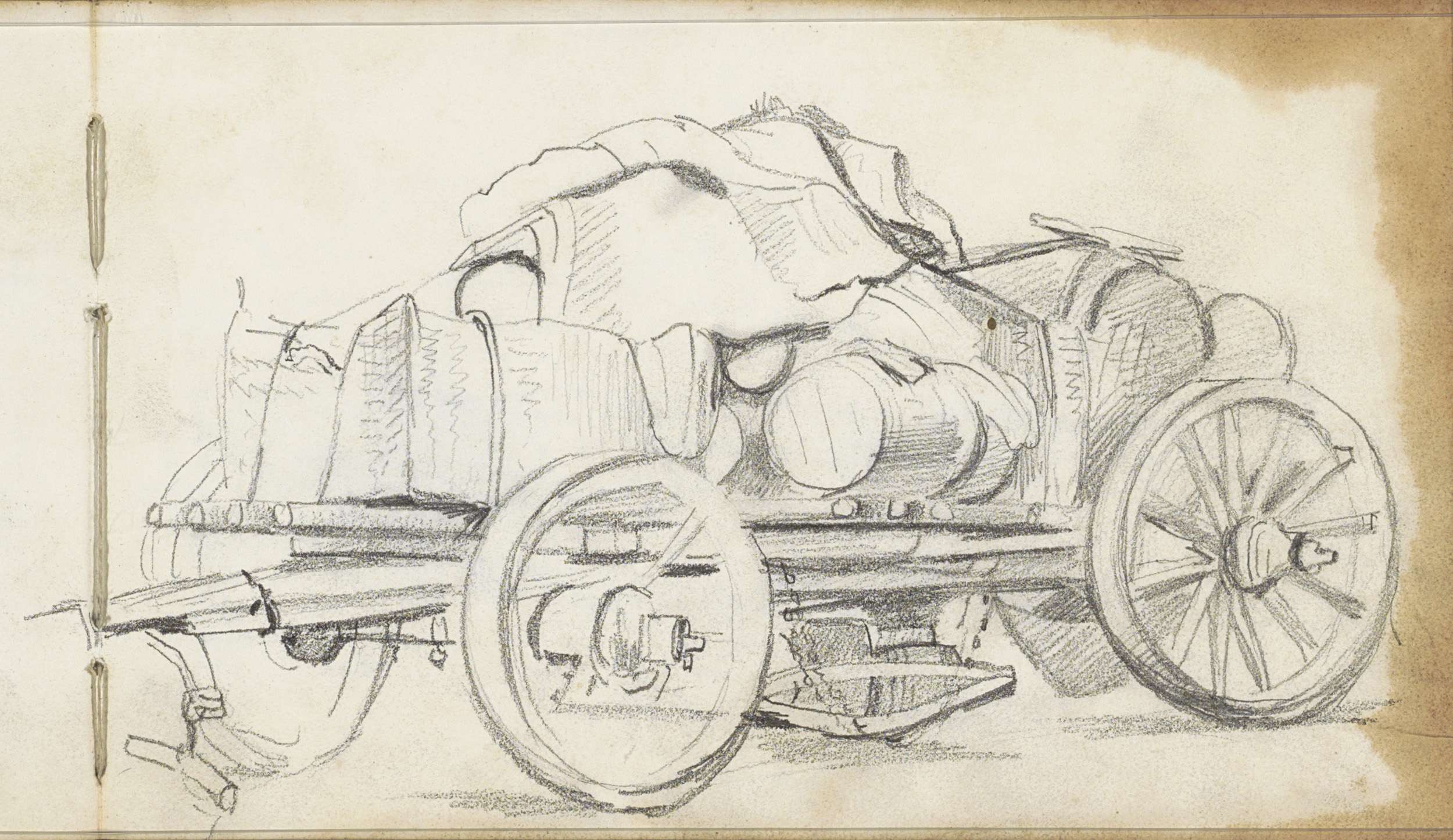 Kar met vier wielen, beladen met tassen en tonnen