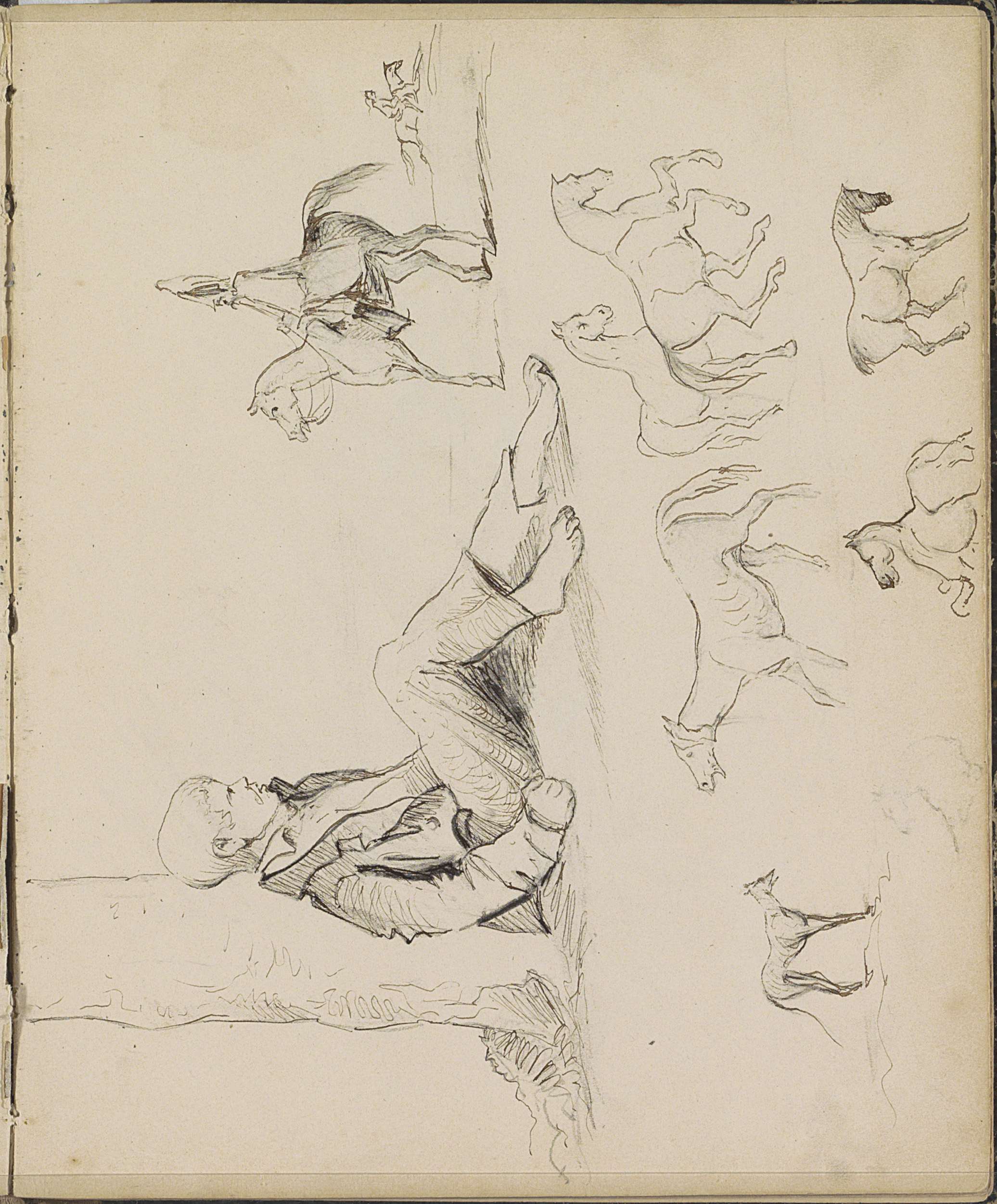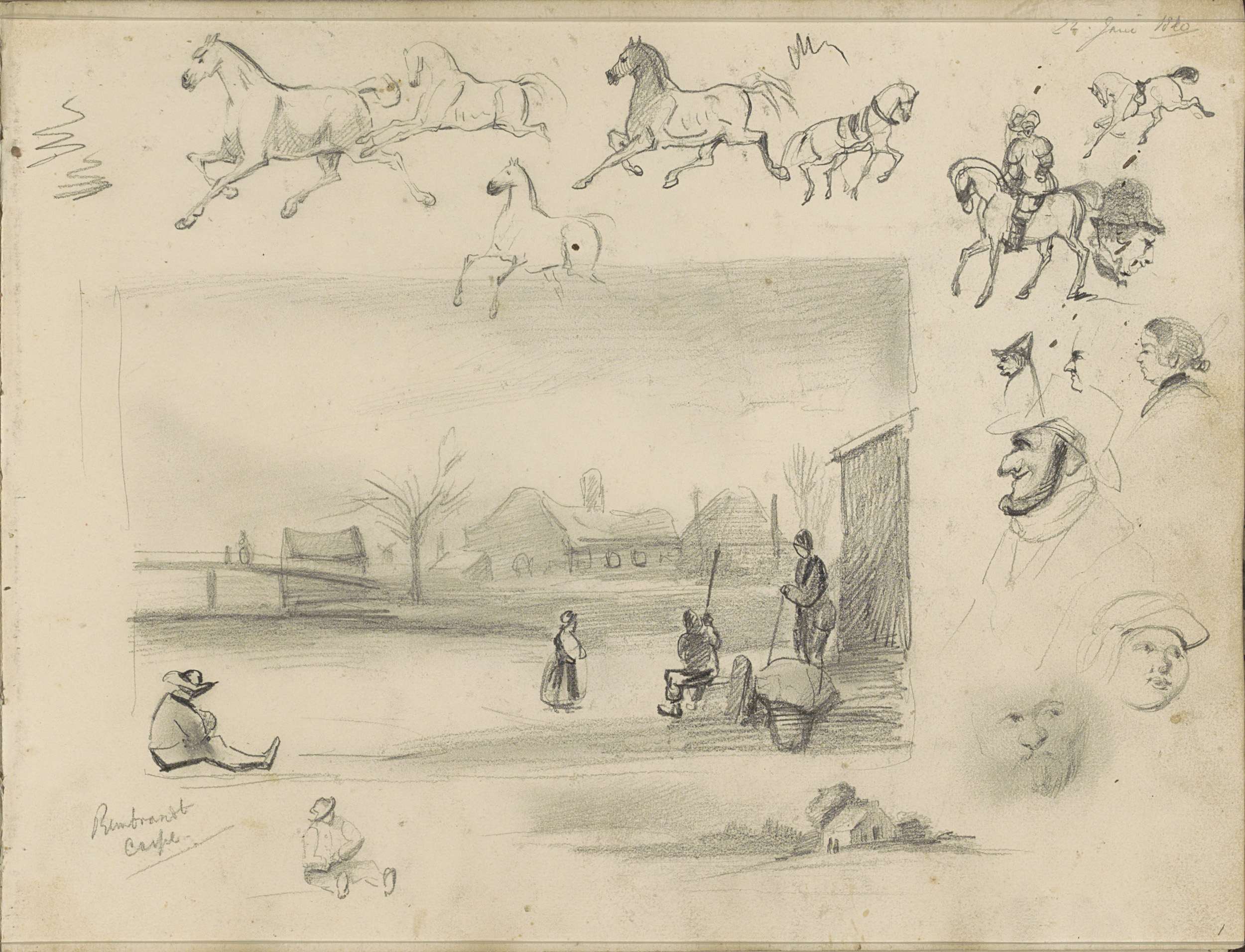 Paard, figuurstudies en een zelfportret naar Rembrandt