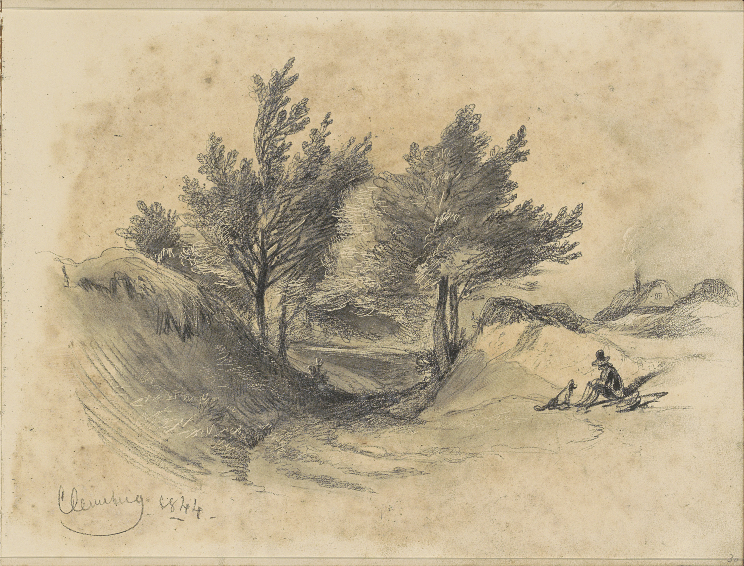 Heidelandschap bij Cleverberg met een zittende man m...