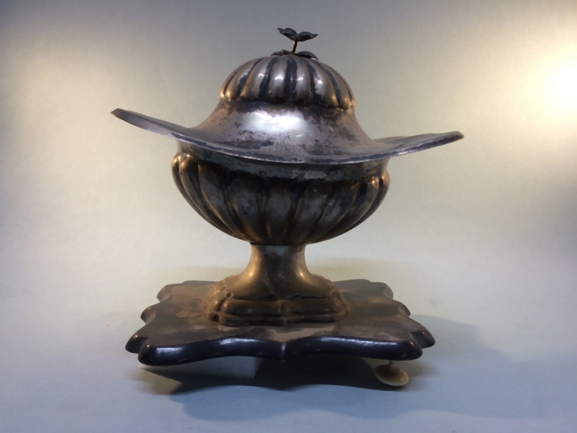 Aansteekkomfoor met op de voet op de hoeken een blad...