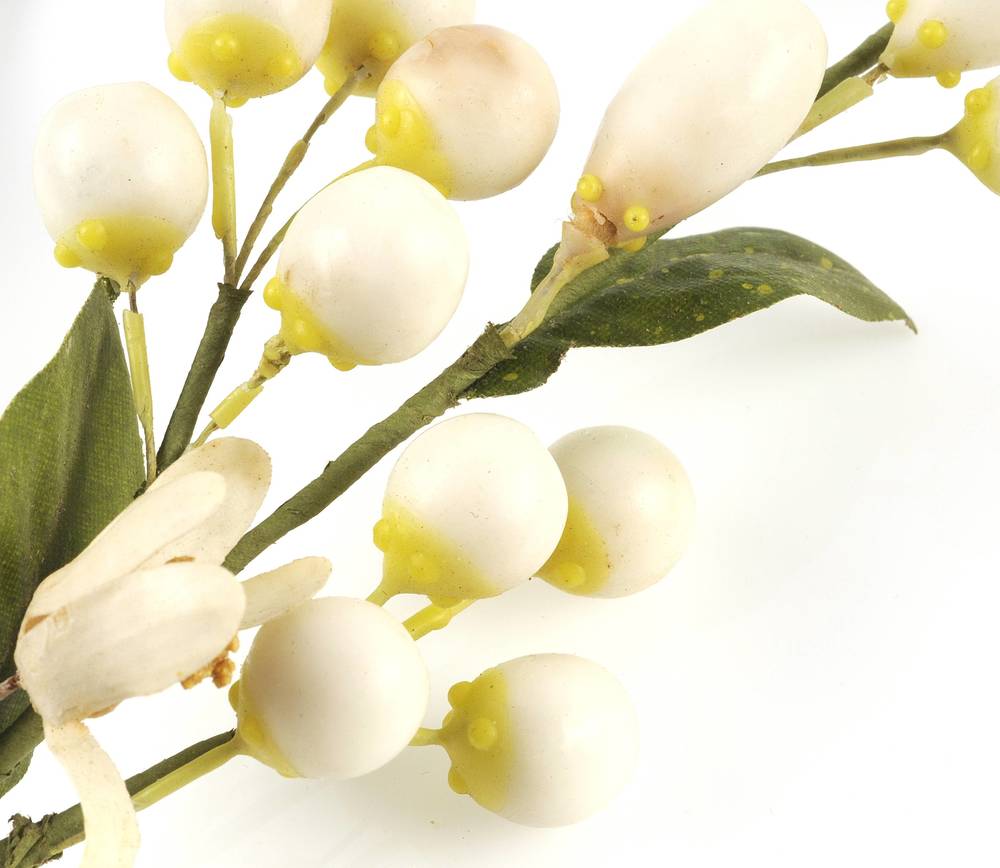 zeven wasbloemen (oranjebloesem) van was en groene b...