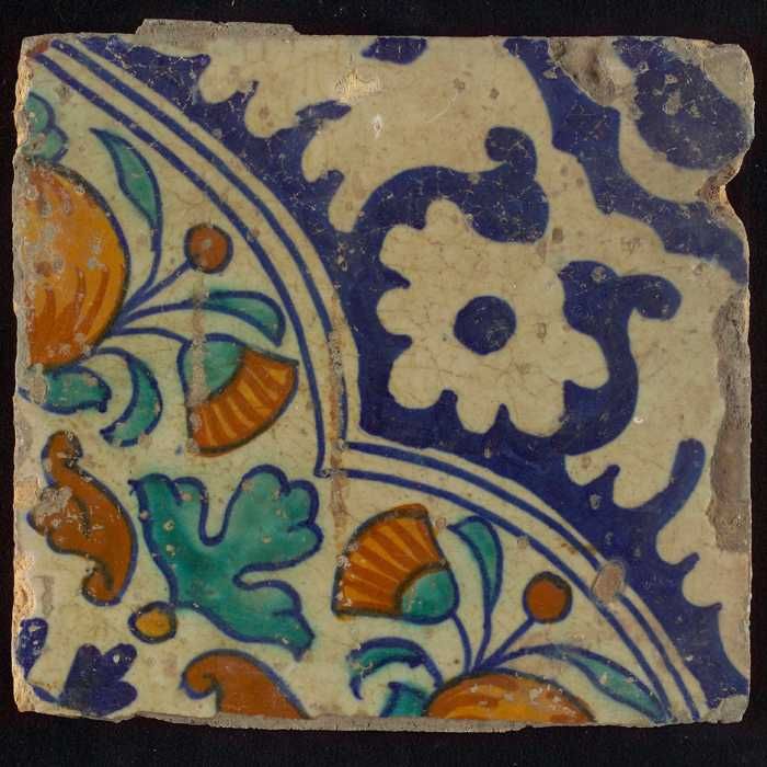 Ornamenttegel, diagonaal ornament in vierpas met bog...