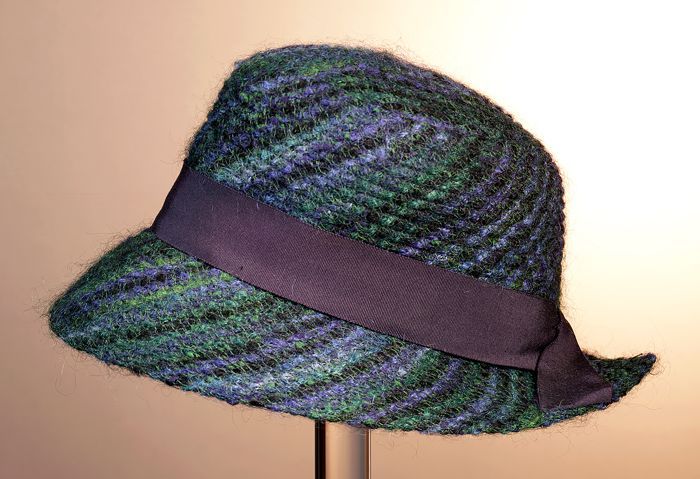 Dameshoed met blauw- en groentinten en donkerblauw r...