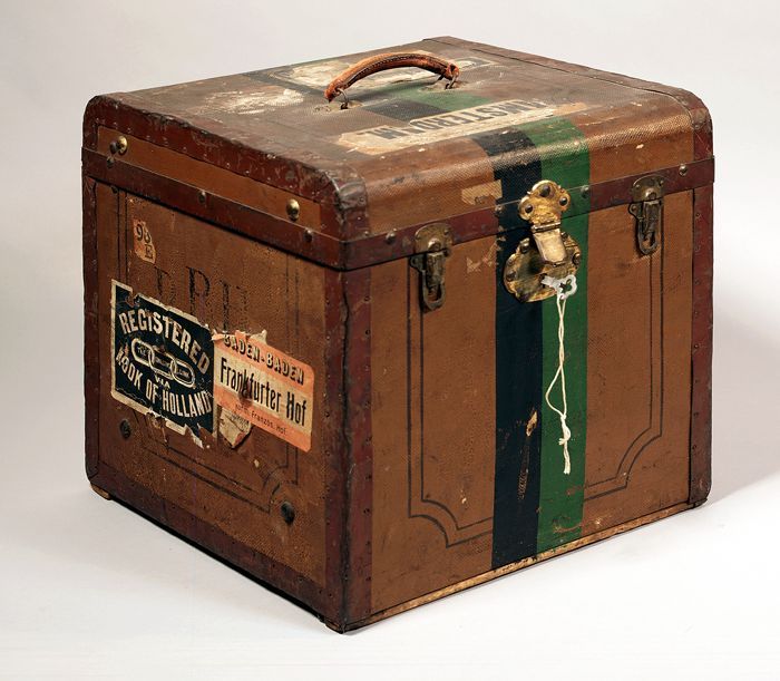 Vierkante houten hoedenkoffer