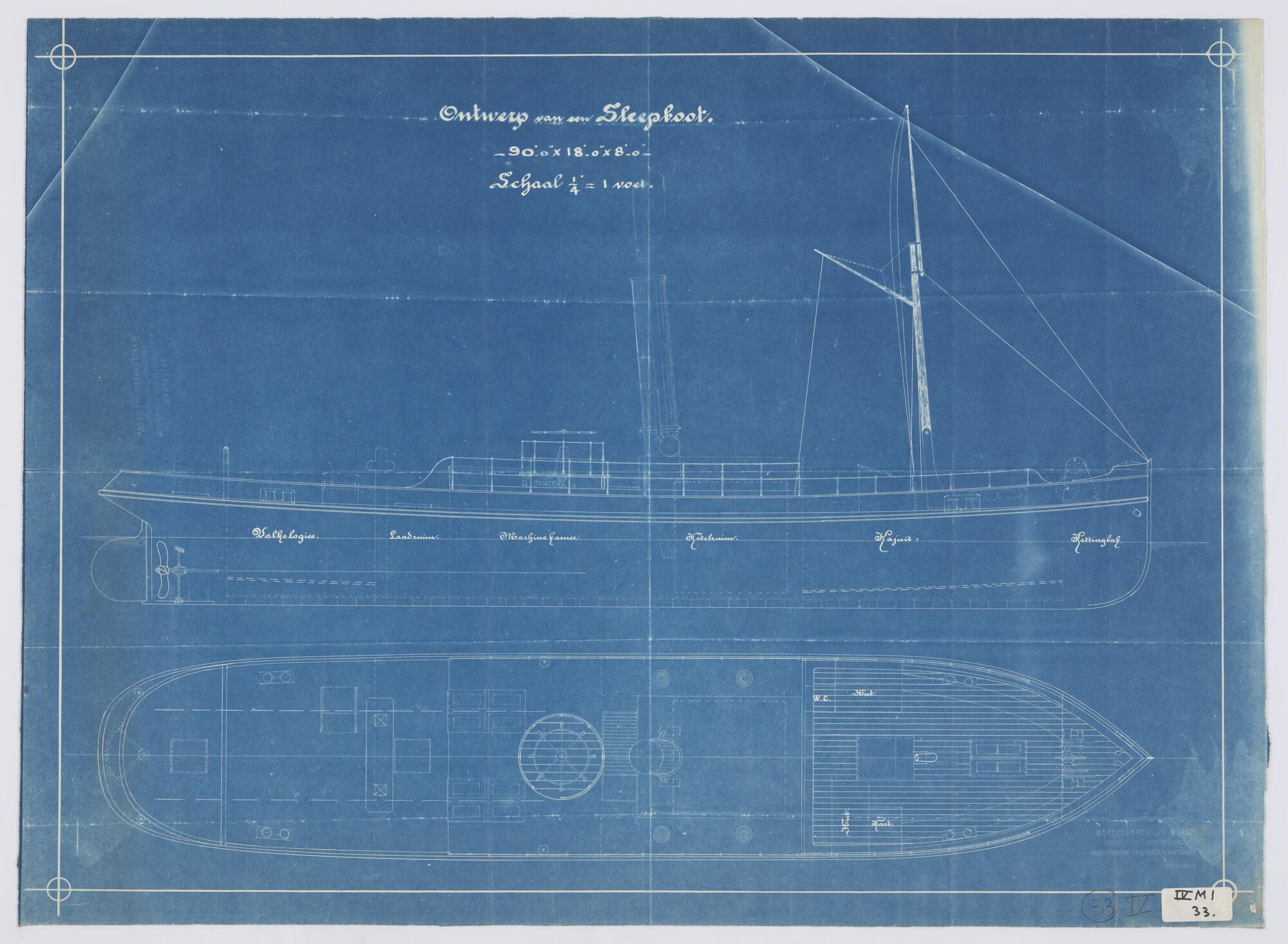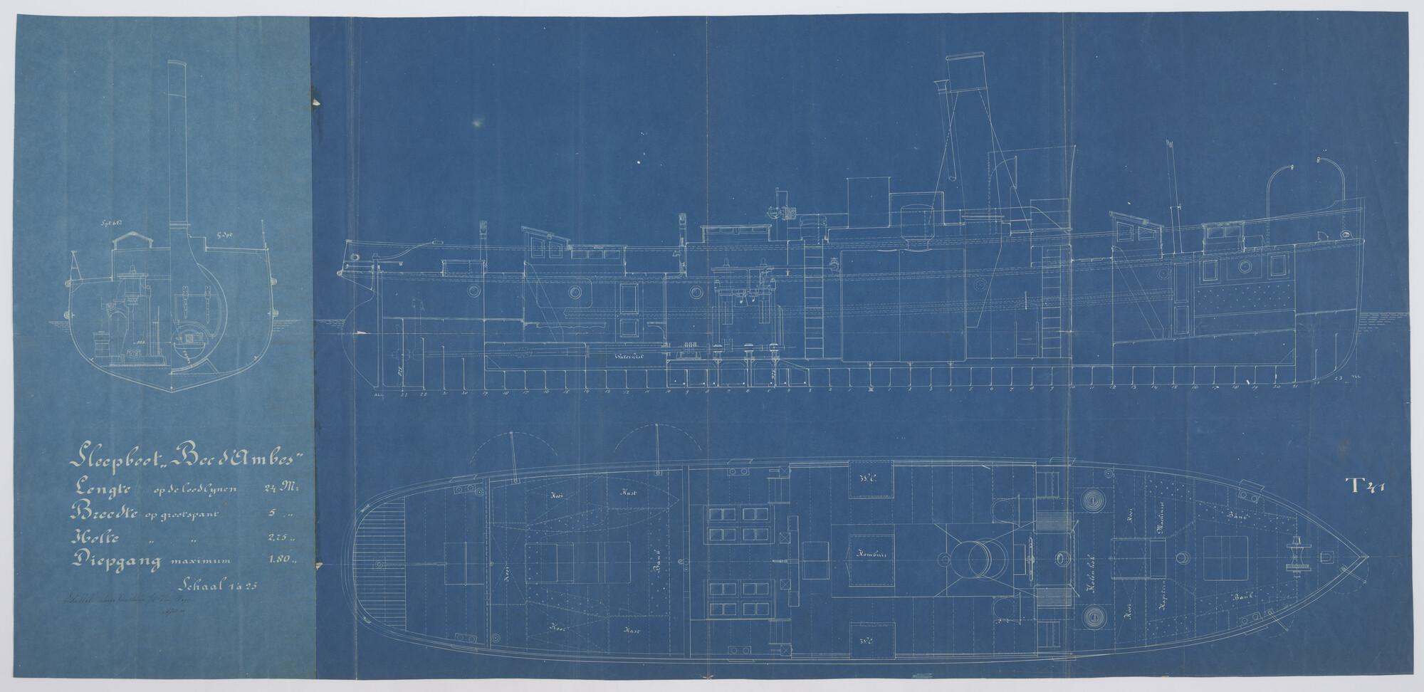 Zijaanzicht van de sleepboot Zes Gebroeders 1882