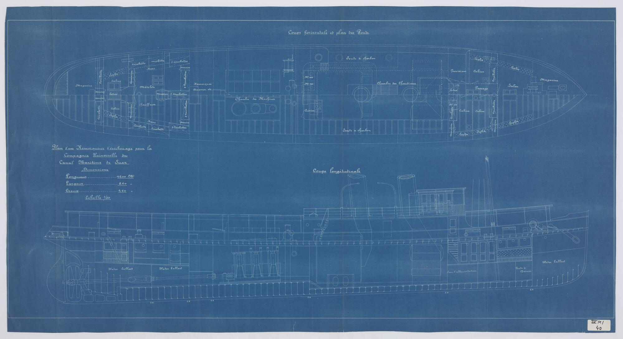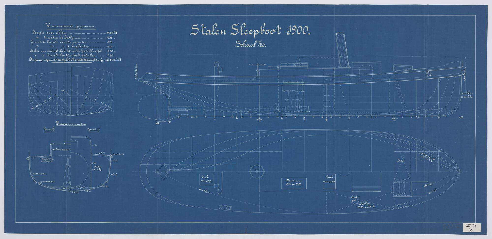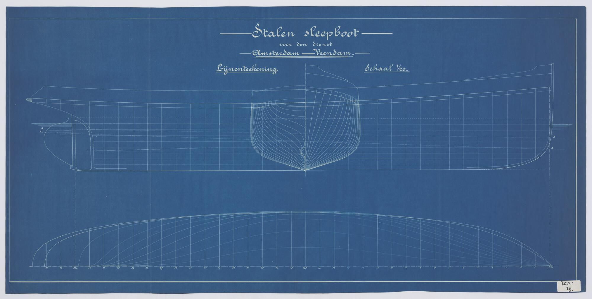 Spantenraam waterlijnen van een stalen sleepboot voo...