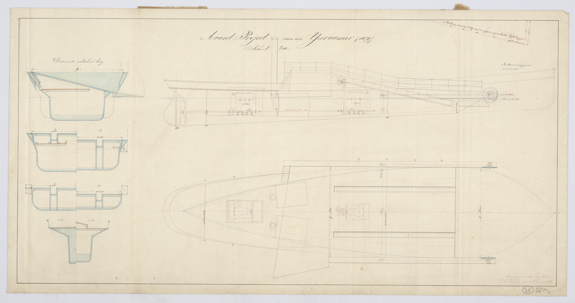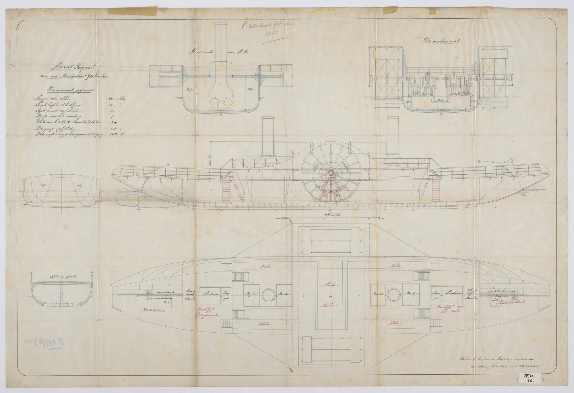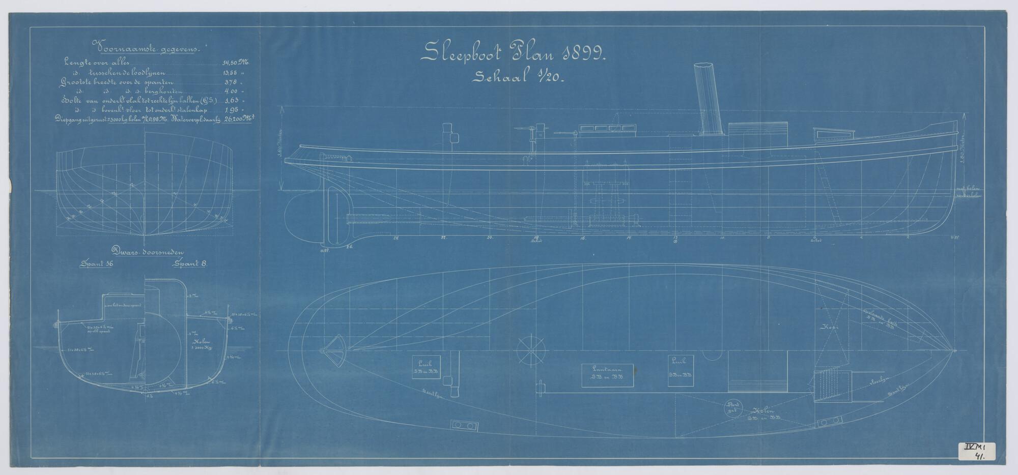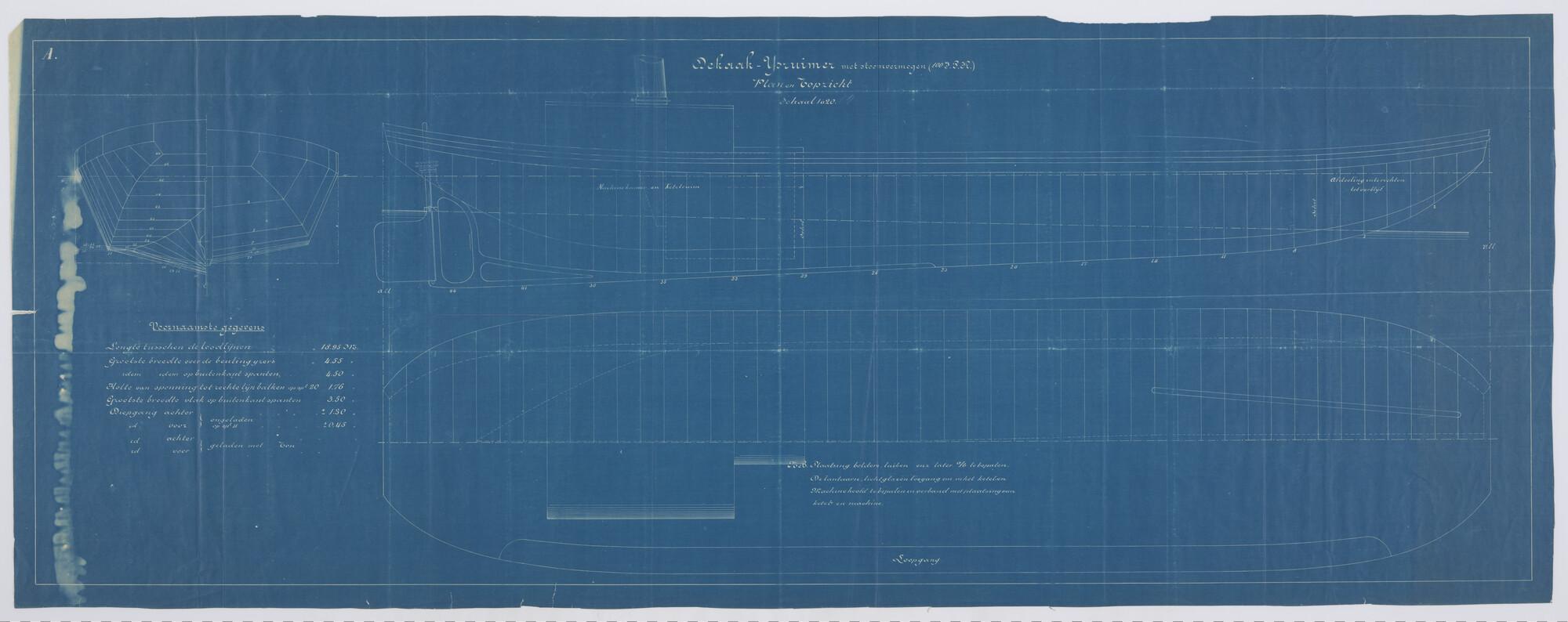 Zijaanzicht, bovenaanzicht, dwarsdoorsnede, spantenr...
