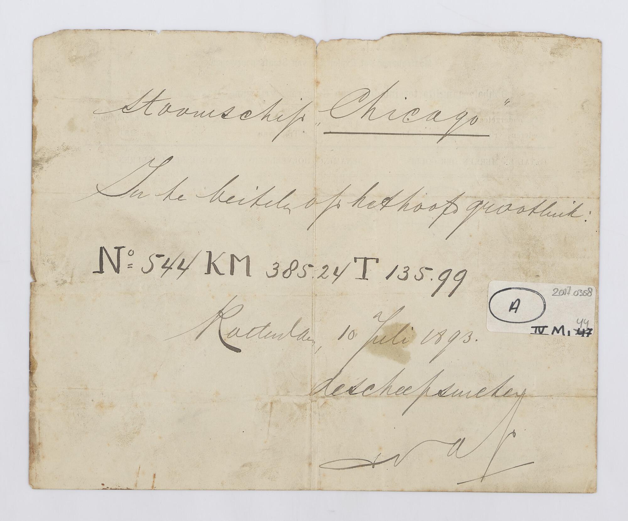 Rapport beproevingscertificaat Veritas voor ss. Chicago