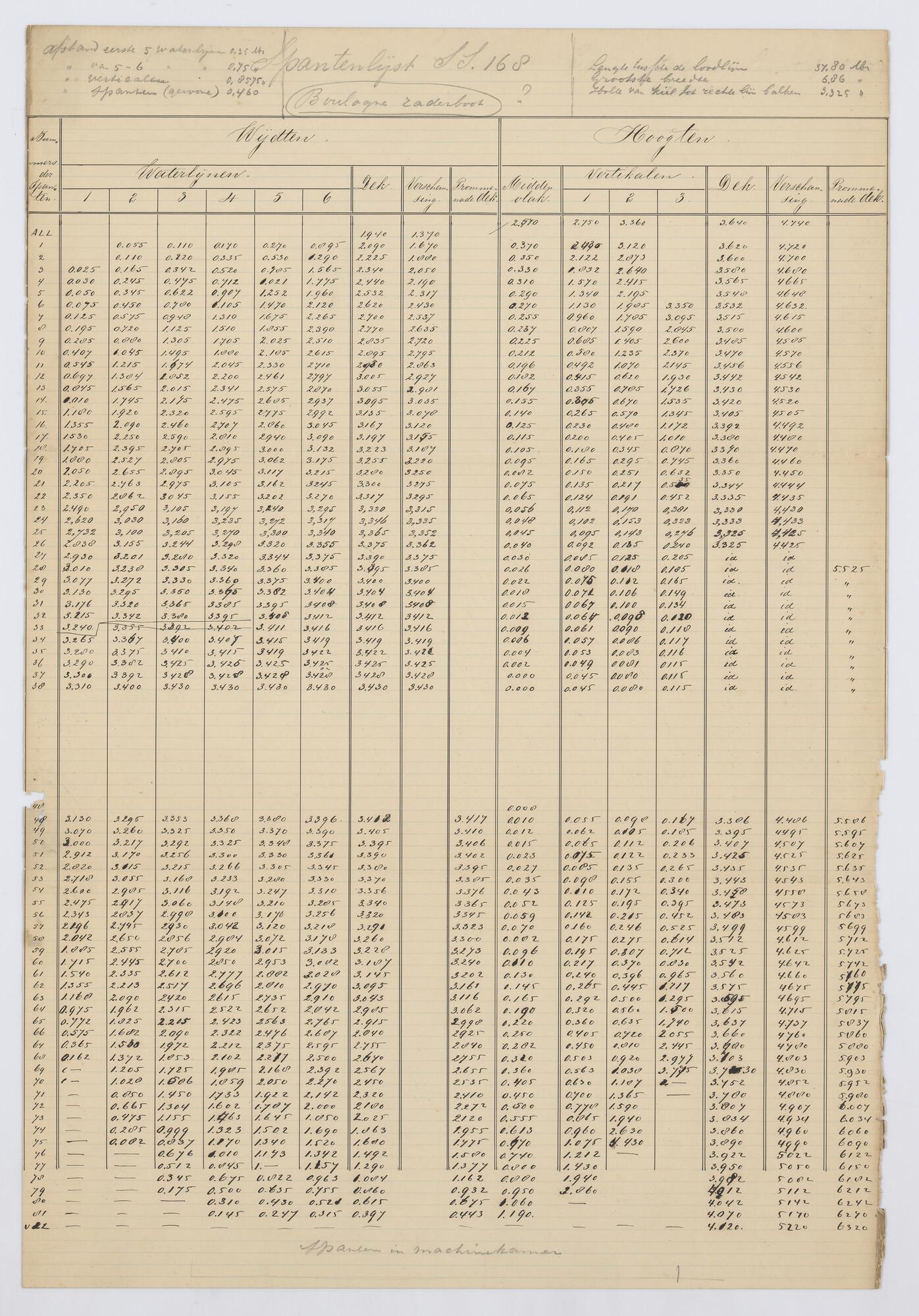 Spantenraam, waterlijnen, verticalen en senten van d...
